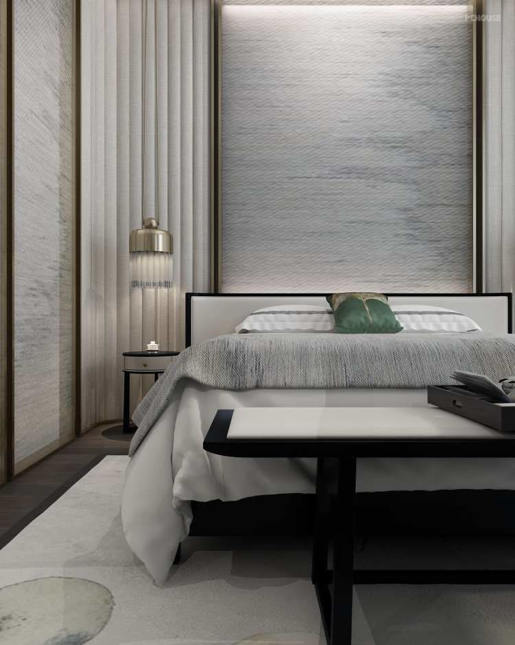 局部细节搭配引入金属质感和色泽,在静谧的空间环境中,凸显品质感,简单中散发着丰富的情绪感染力。