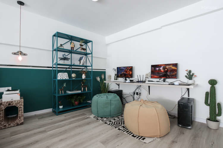 书架和懒人沙发搭配,此区域主要还是以娱乐为主,所以舒适是第一位,采用了懒人沙发代替常规的椅子,让业主尽可能的放松下来。在生活和娱乐之间寻找一种平衡感。