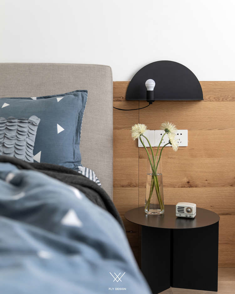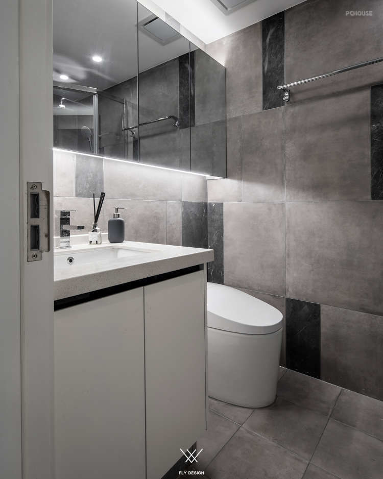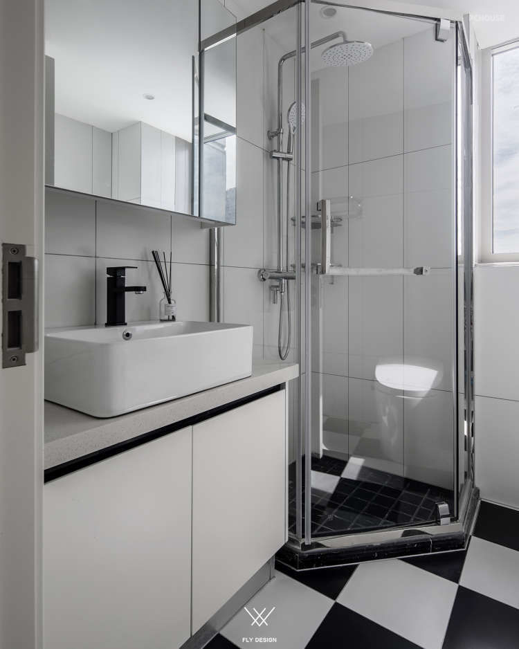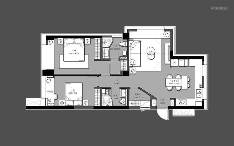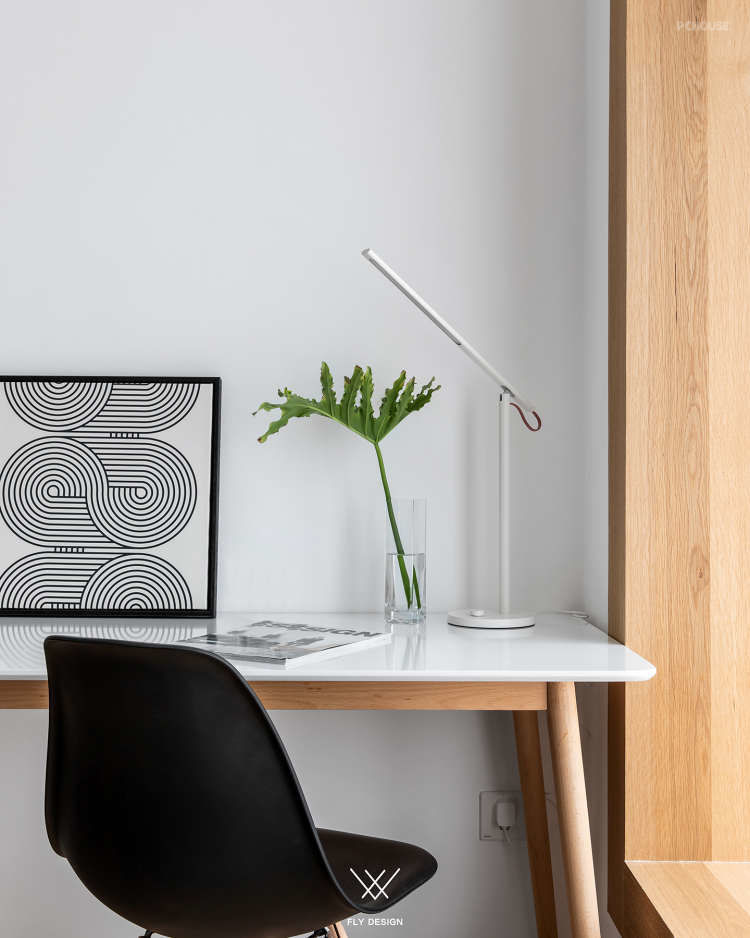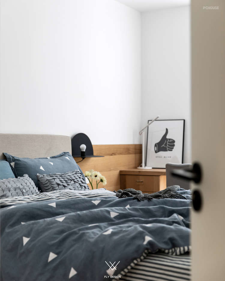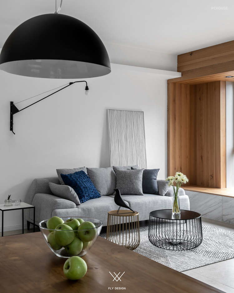 可以看到设计师把原本在厨房中间的墙体打掉,让厨房面积变大,形成了这样的开放式厨房。为了增加空间的利用率,餐厅区域和厨房区域是一体的。增加室内的储物空间在玄关处设置了一个墙面为斜面的储藏室,在通过玄关处进入客厅区域这种空间的变化让客厅变得宽敞。