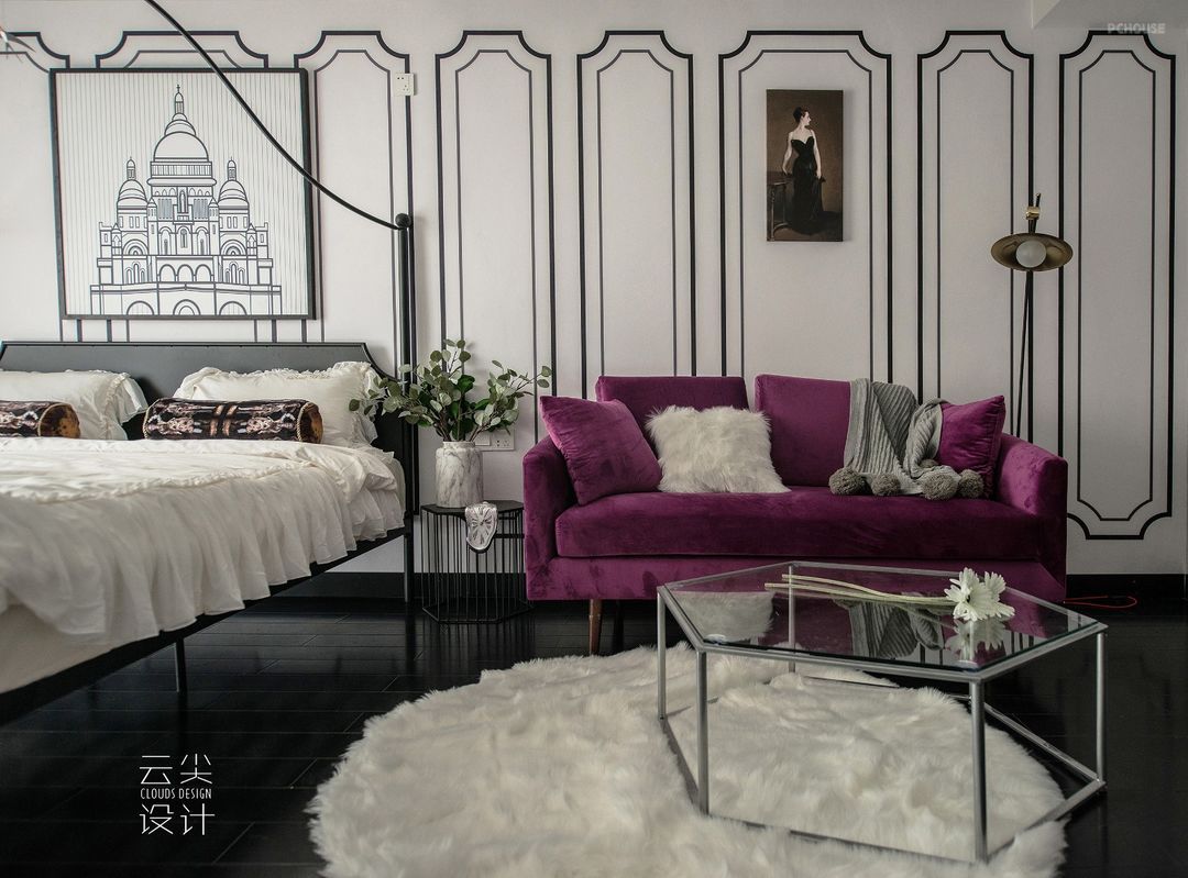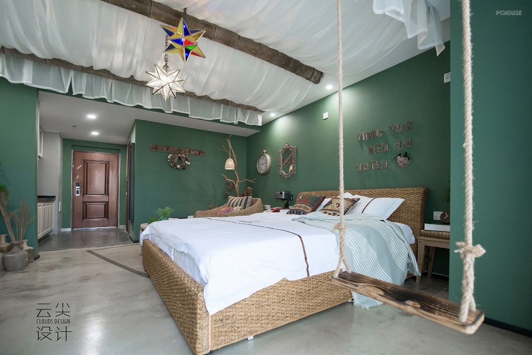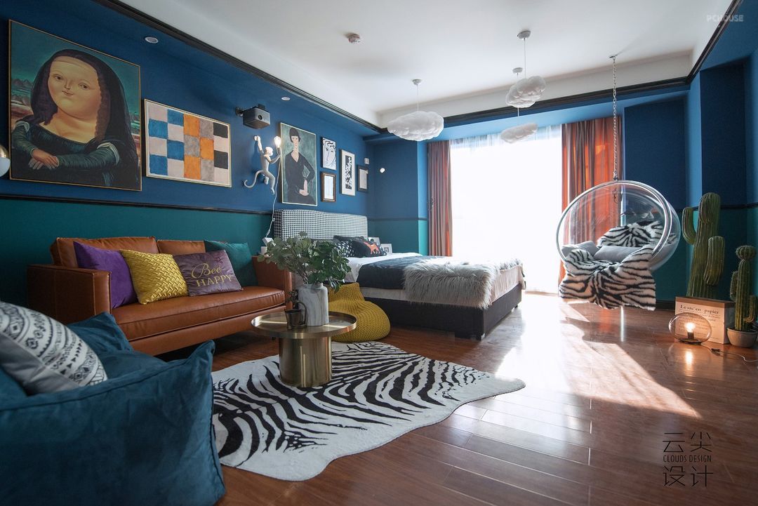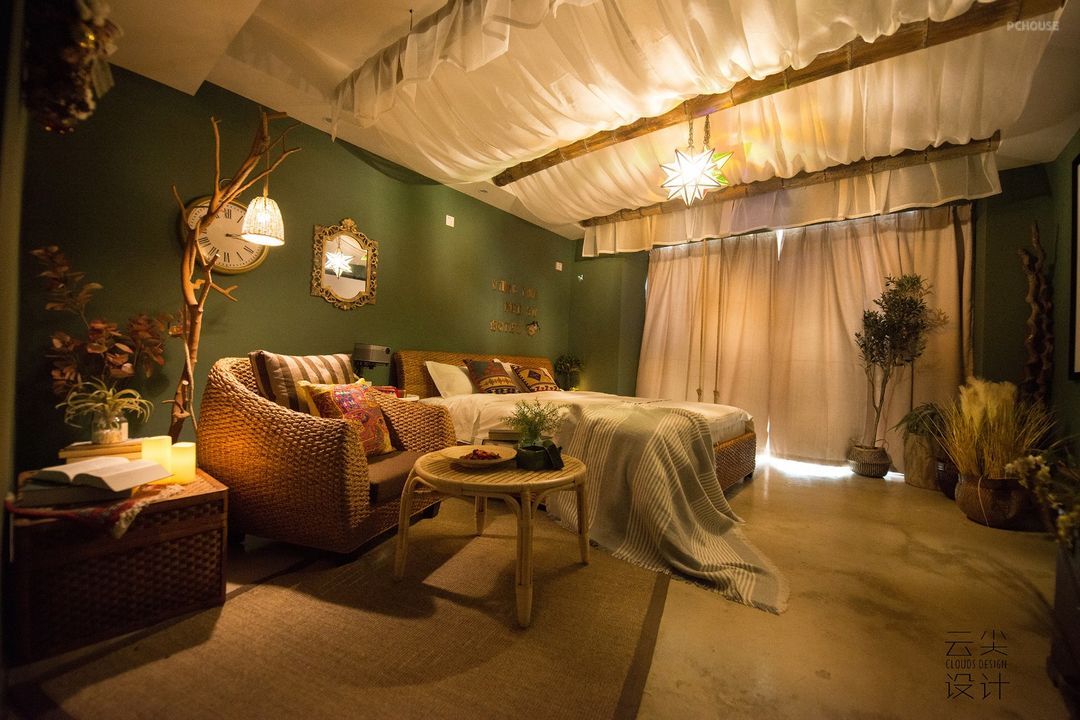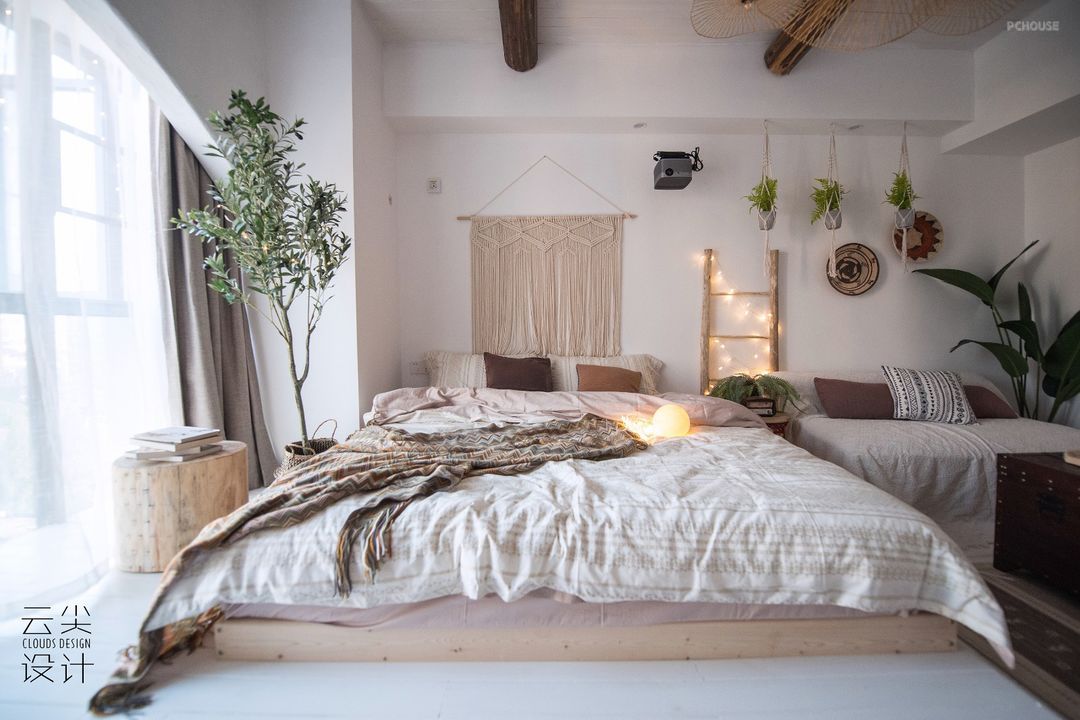 以10公分地台弱化睡眠和功能休闲区。想让整体或坐或躺都可以。闺蜜一起住可以坐上地上相交谈心,情侣搭配夜光等效又是甜蜜的一夜