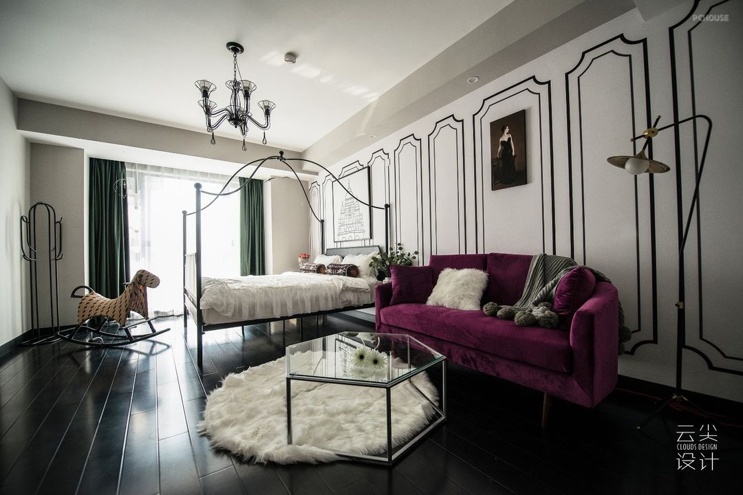 传统繁复的欧式床也改成铁艺造型,简单的线条隆起仿佛城堡尖端