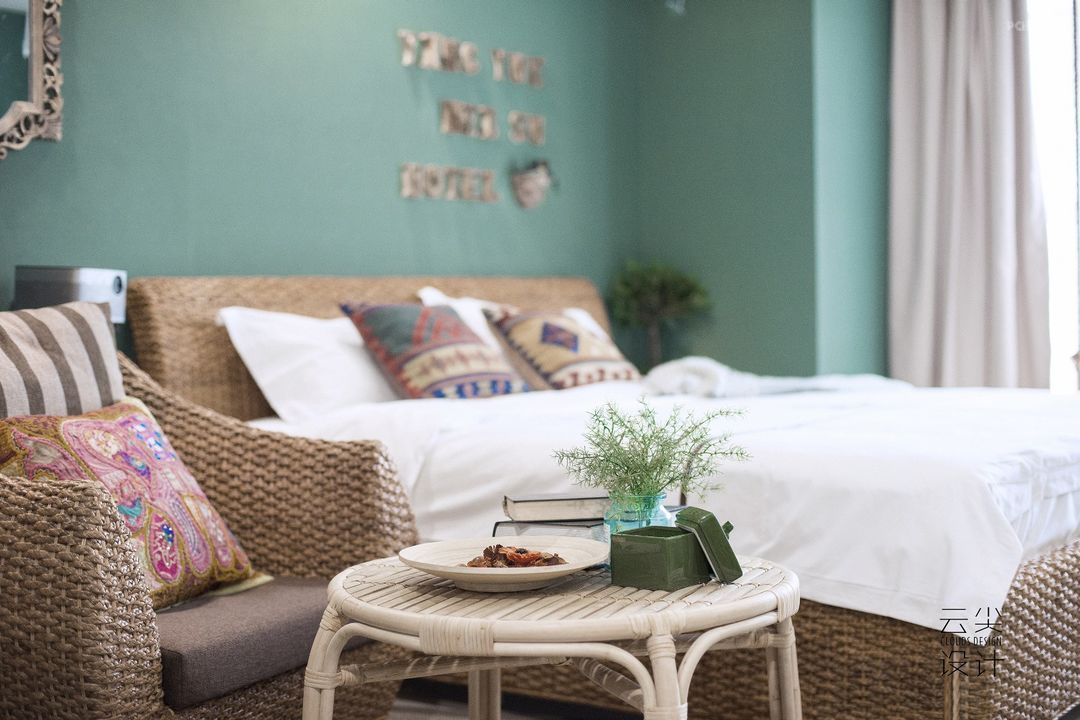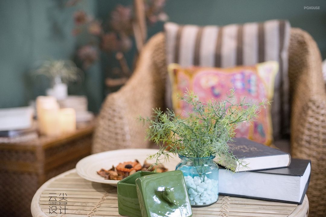 所选软装材质都是自然的藤质,树木,竹子,棉纱等,打造一些古朴感觉