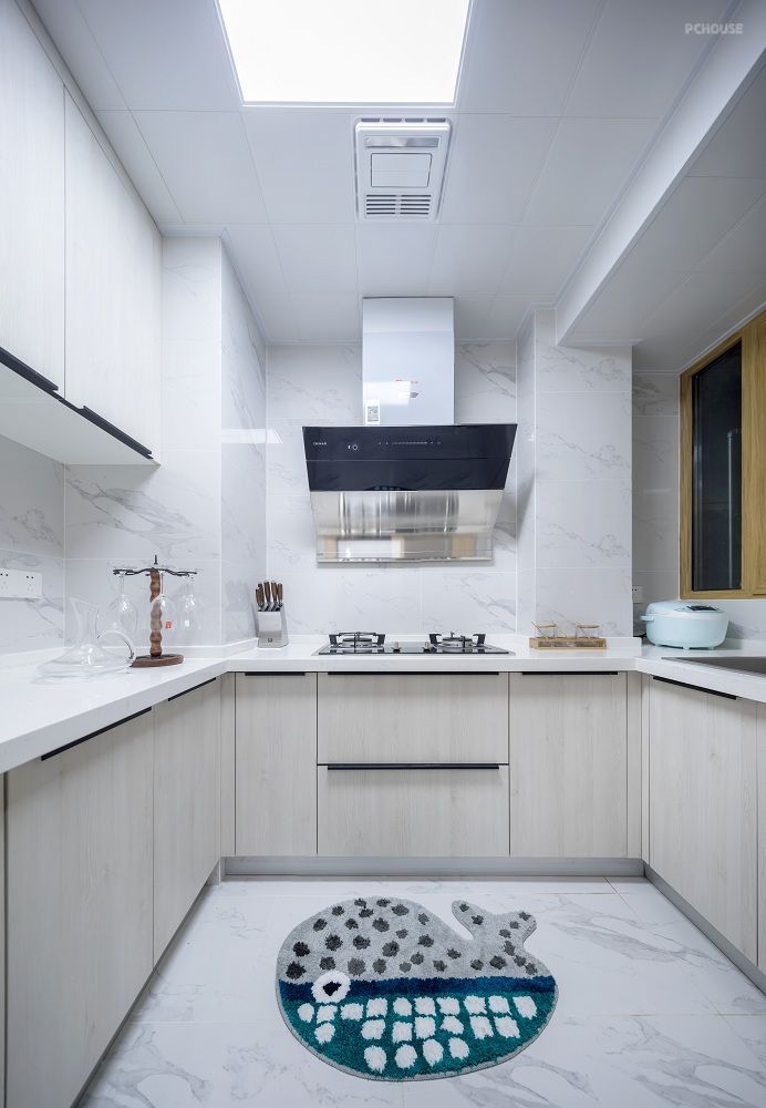 这个作品结构部分只做了少量的调整,厨房的部分,分成了中西厨的形式。解决了洗衣机,装箱,还有储藏柜等等问题。