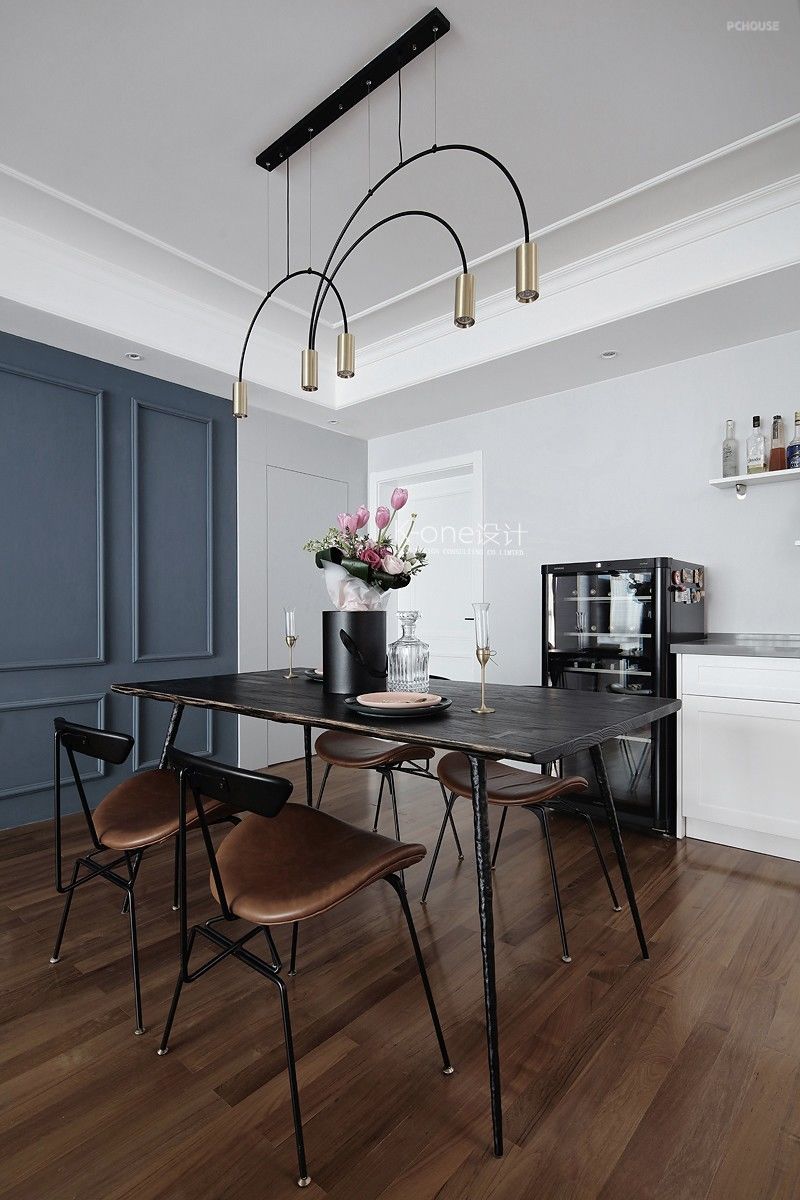 从入户看餐厅,墙面辅以线条勾勒出别样的美感。