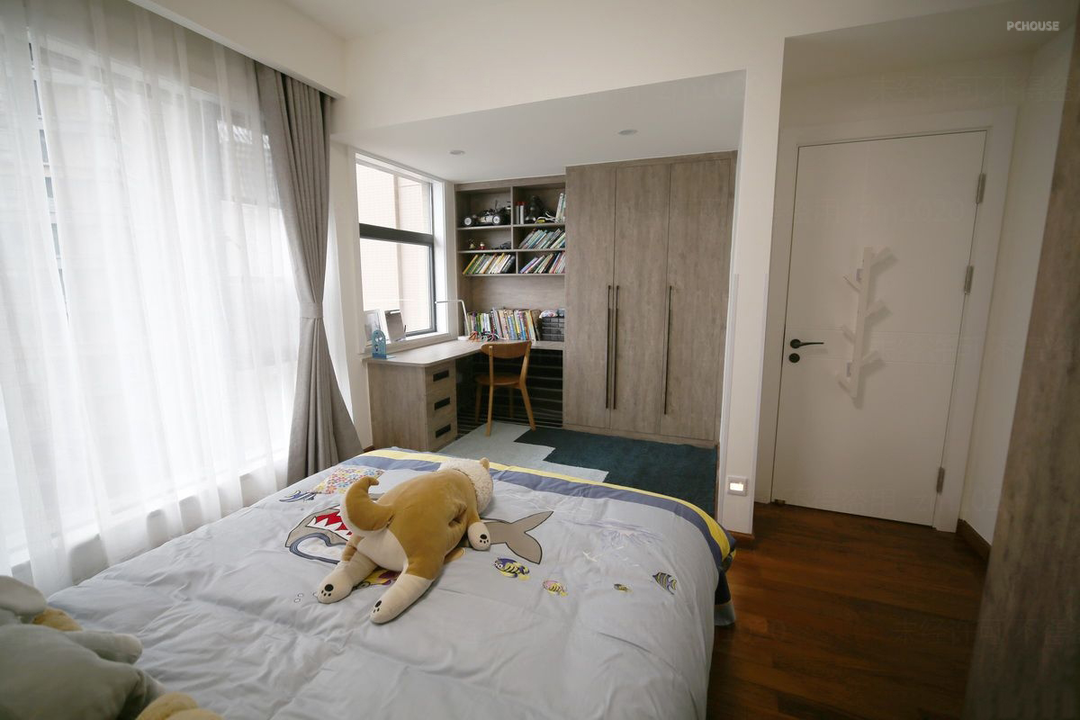 小孩房的读写区域是之前的卫生间,可怜天下父母心,每个父母都希望把最好的留给自己的孩子,阿kun一直强烈要求一定要给孩子一个独立的书房区域,所以我们将原有的卫生间拆除,将卫生间部分纳入到小孩房,不但满足了孩子安静学习的区域,并且还增加了更多收纳空间,就算孩子到成年也能满足需求。