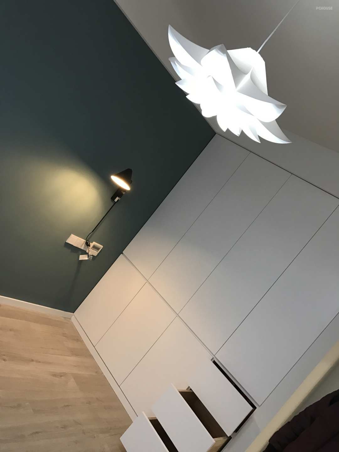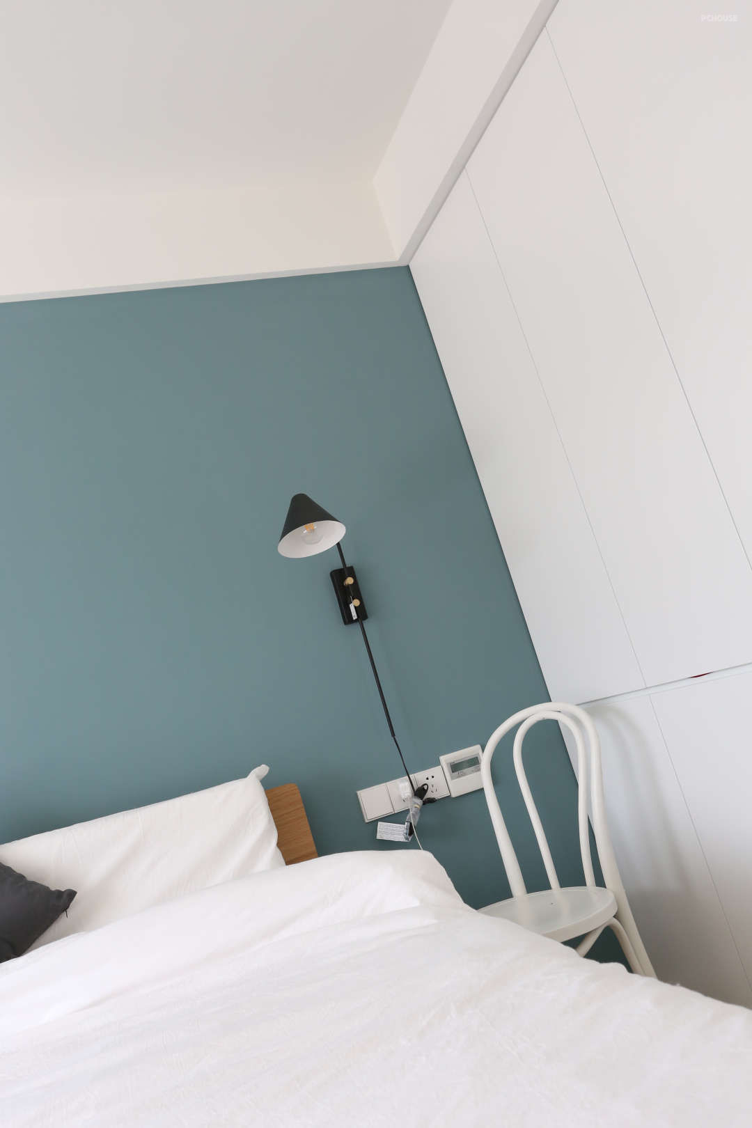 由于床头柜还没买好,临时用一把椅子代替床头柜使用,效果挺好的