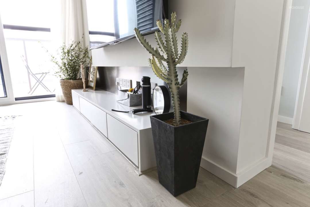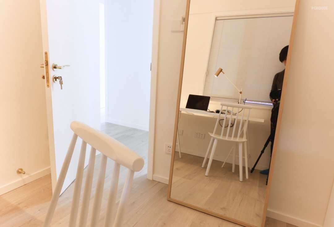 由于还在偶尔居住阶段,书房很多东西没有搬过来。书房在北面,墙面大面用了浅白色。同时书房增加了一大排柜体,补充储物空间。