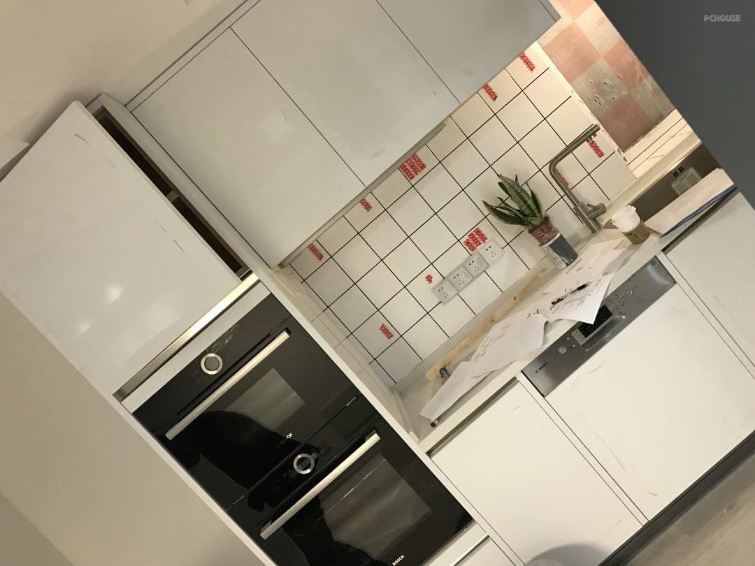 开放式厨房,原灶台和水槽位置没有调整。水槽上面增加了一盏小吊灯,洗菜时候可以看的更清楚。