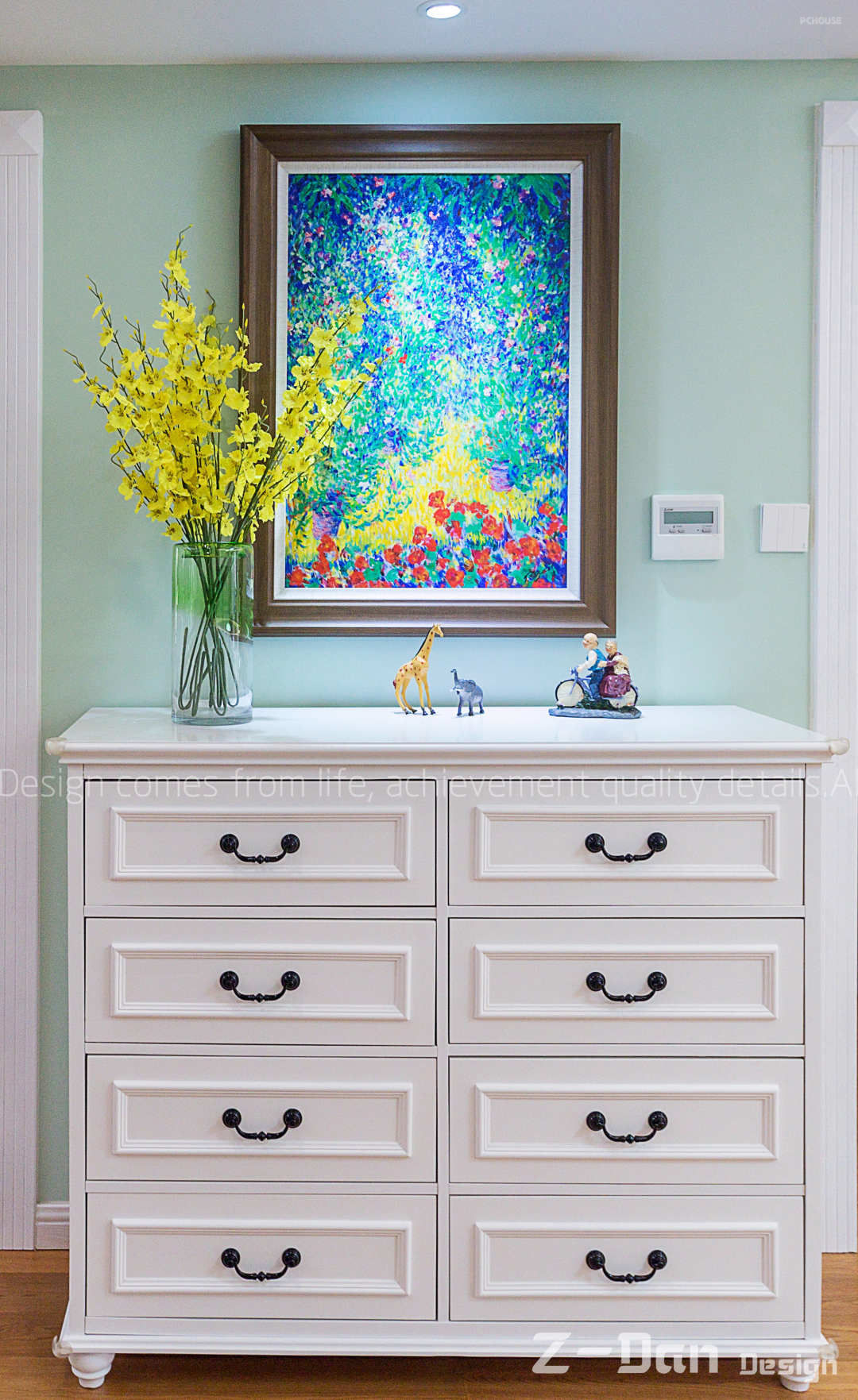 前言: 这是一个132平方的平层住宅,业主是一位为人和善,做法务工作并且热爱生活的人。我在大面积墙壁用色上也是体现一种安静祥和之态,采用了果绿色,散发处浓郁的自然气息。其它地方应客户需求做了许多储物功能。我所做的美式风格,摒弃了繁复的装饰,简约而不简单,让业主在一天的工作疲惫之余,感受生活中的恬淡与美好。