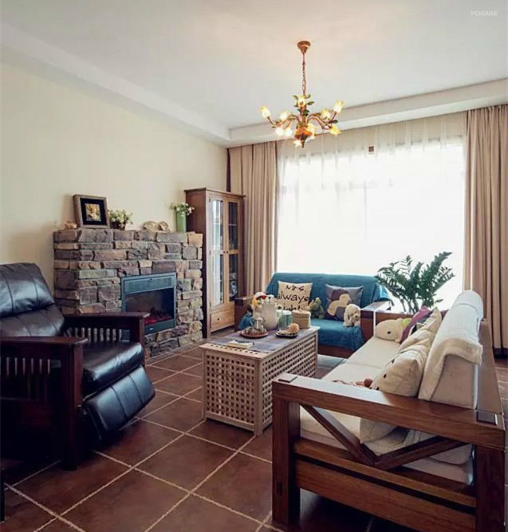 美式田园风格的客厅是宽敞而富有历史气息的。