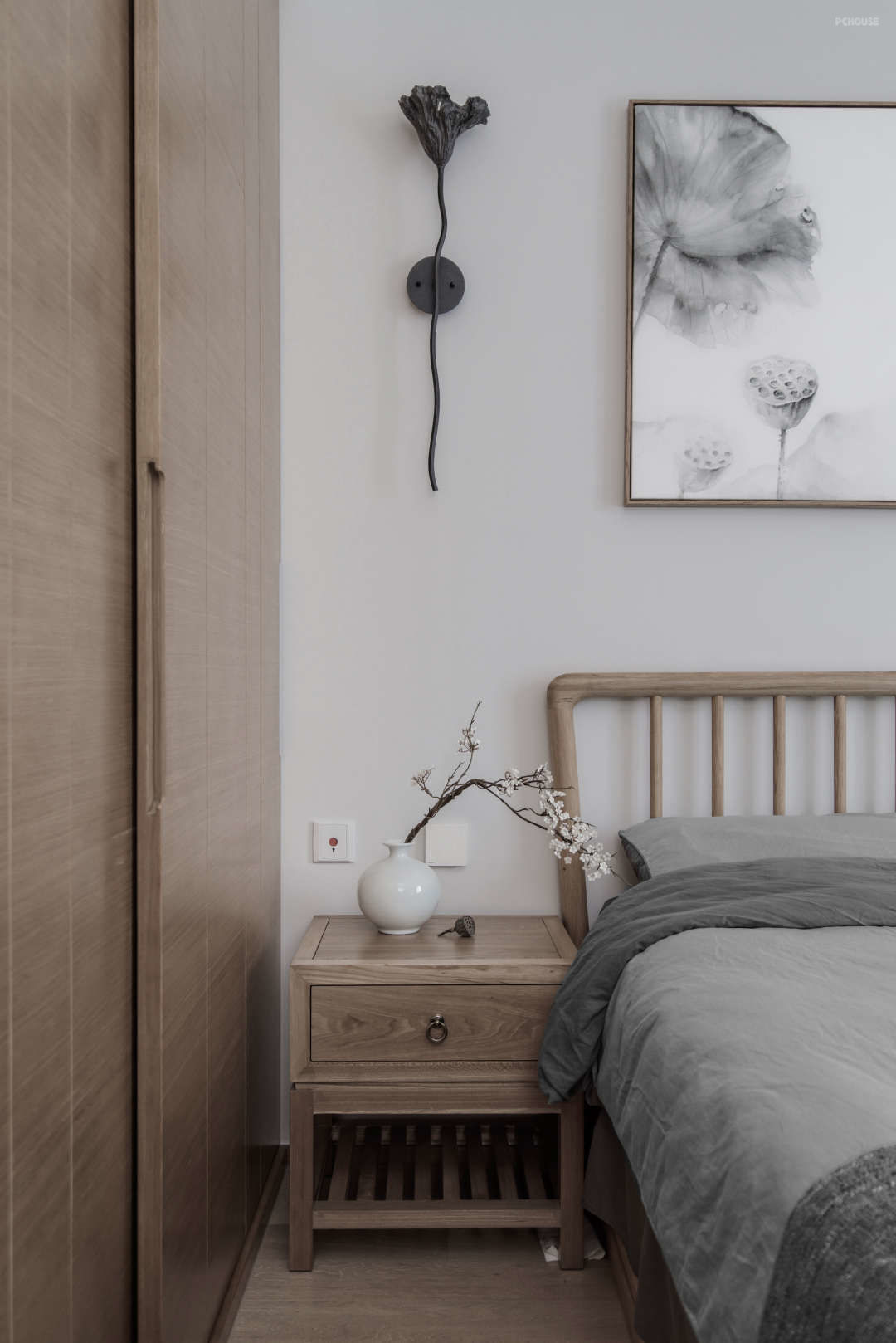 墙面的冷灰色和木饰面的暖色,互补而生。