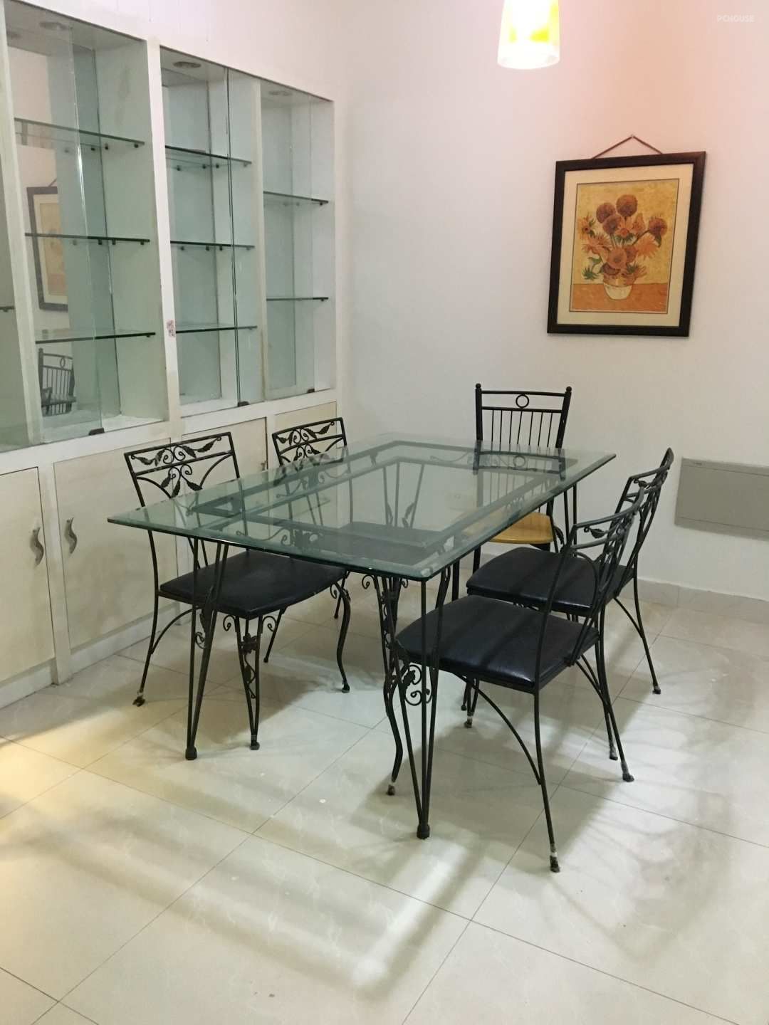 改造后的餐厅,在原来桌子上加了一块灰色长桌布,换了餐厅灯摆上了必要的餐具和干花,墙面装饰也是简简单单的挂上了手作花环了摆了一本美食有关的杂志。