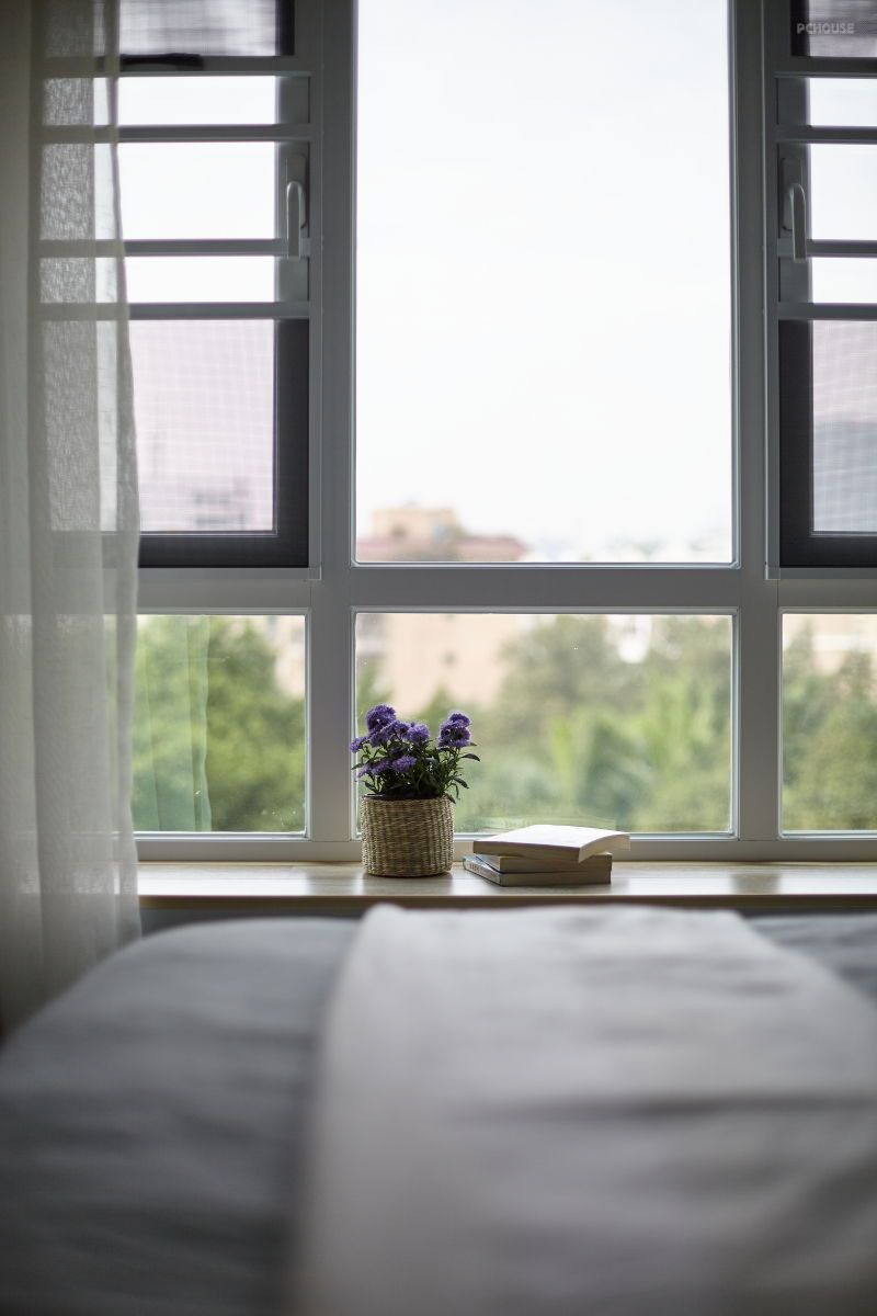 主卧的色系在灰色系中搭配,一切以柔美为中心,静静的触摸到那岁月的墨痕。