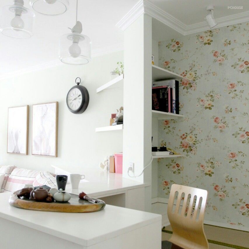 纯白家具,碧绿墙壁,搭配沉着的木地板。犹如春风袭来,温暖大地,强烈的春天气息不言而喻。