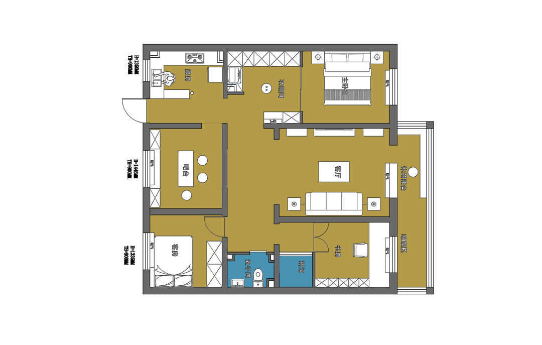 原始户型图:本案的卧室、客厅较宽敞,两个卫生间狭小,门厅空间狭小且采光差。