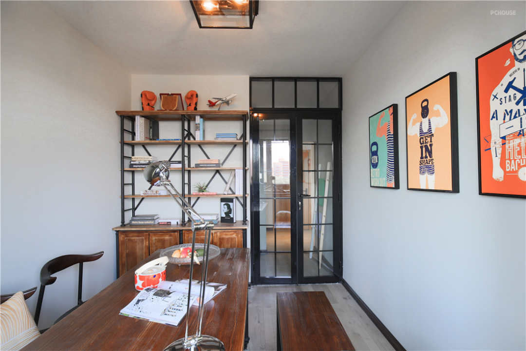 书房采用铁艺双开门,给人更厚重的感觉;业主本人很有文艺范儿,喜欢有品位的生活,享受在书房每天清晨第一缕阳光照射进来的感觉。