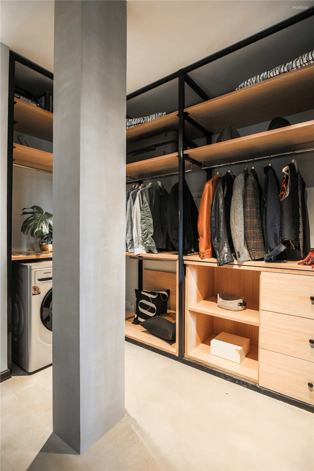 前言: 本案设计风格为轻工业风,在初期沟通时,业主提出以下需求:一、步入式的衣帽间;二、偏工业风的设计,尤其喜欢大面积使用水泥漆,因此才有大家看到的大面积的水泥墙和水泥地面的设计,后期使用明艳色彩的家具,目的是让空间活跃起来,因为空间结构层面上的色彩均属于灰色系,需要亮色调节空间氛围,同时所有家具选择均是复古风格的,很符合业主的儒雅气质。