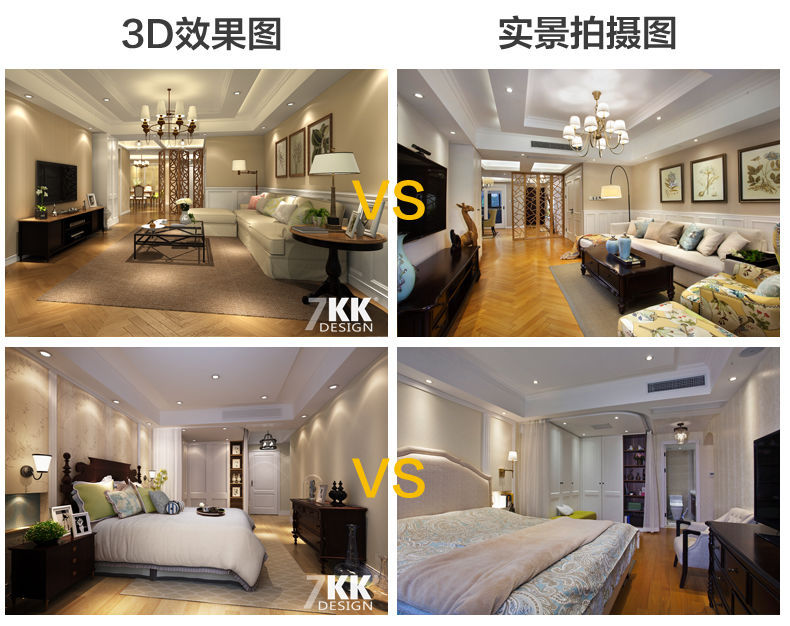 本案有户型图,效果图的前后对比,可详细看到本案的空间改造等。美式简约风格,清新雅致。