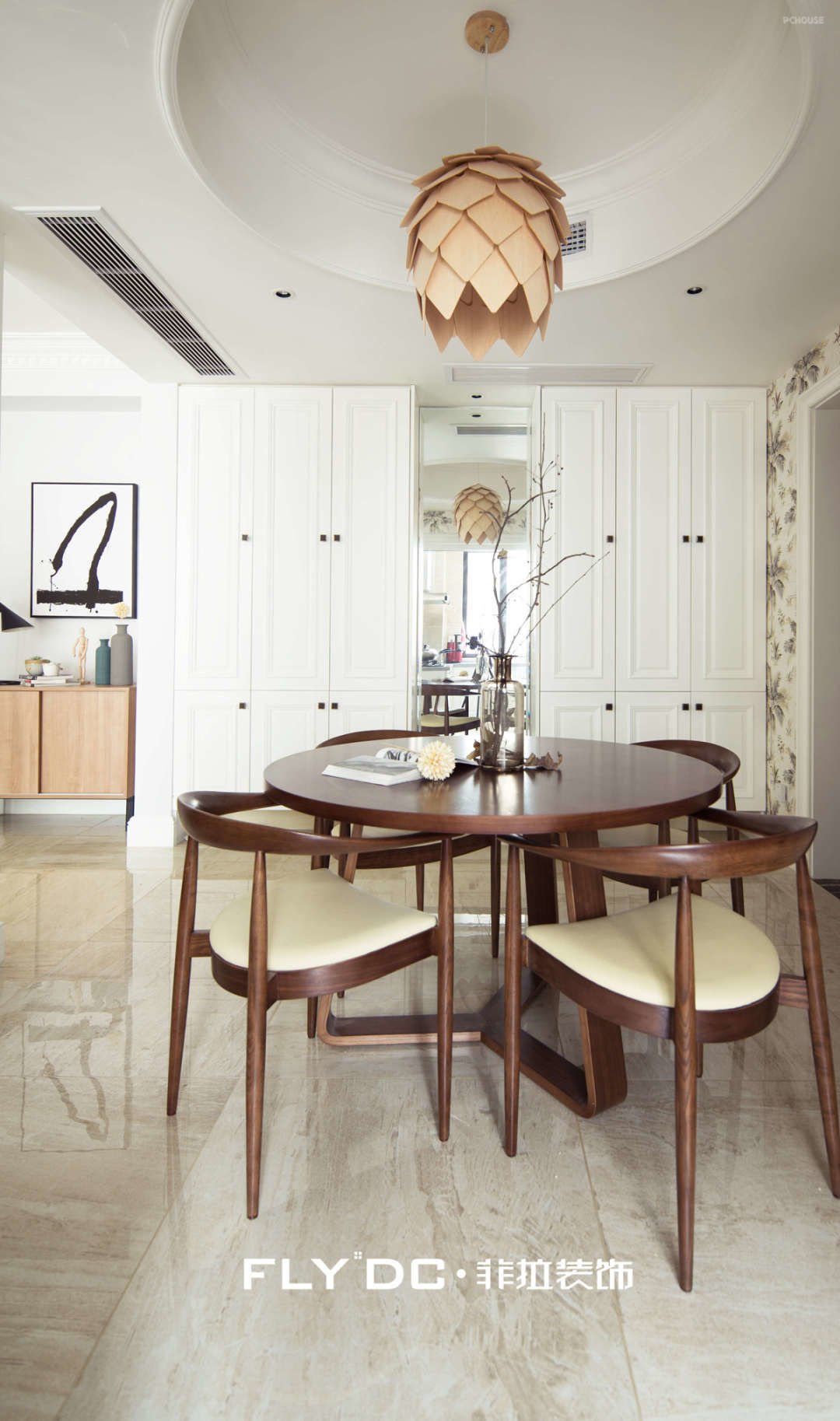 餐厅吊灯选用松果灯,餐桌椅为定制,性价比非常高。
