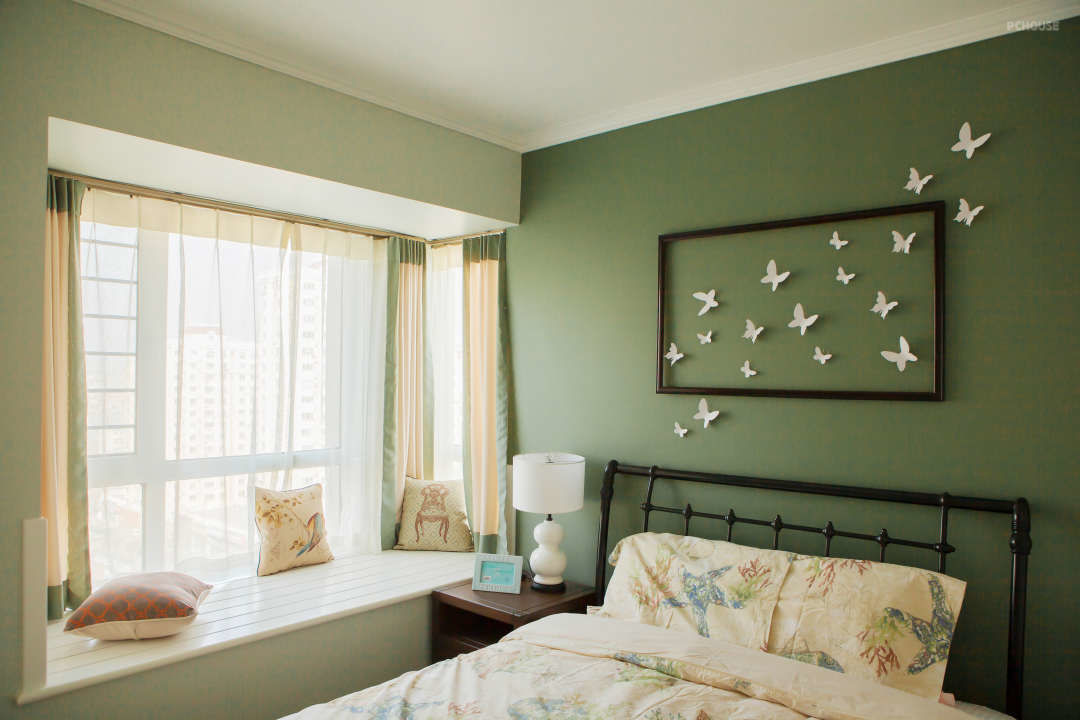 主卧飘窗用了木板包起来,而木板不像窗台石那样冰冷,坐在上面享受午后阳光,听歌看书,也是惬意极了!