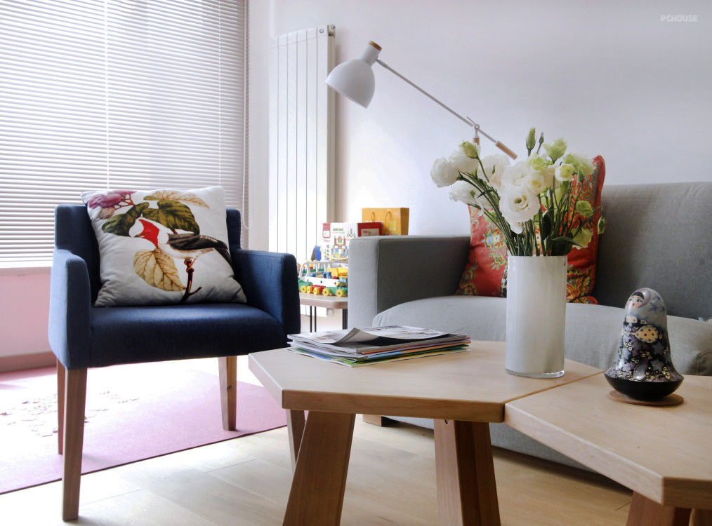 因简约的设计理念,装修后客厅的活动空间大了许多。人在其中活动或休息会感觉舒畅。若家里有小孩儿,宽敞的客厅更成了孩子们的游乐园。