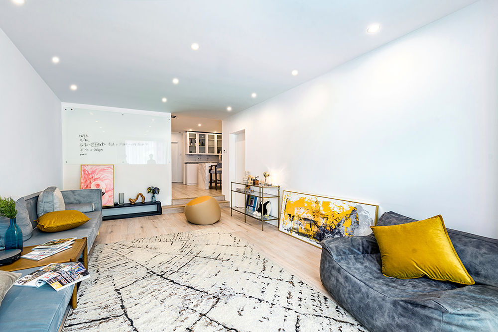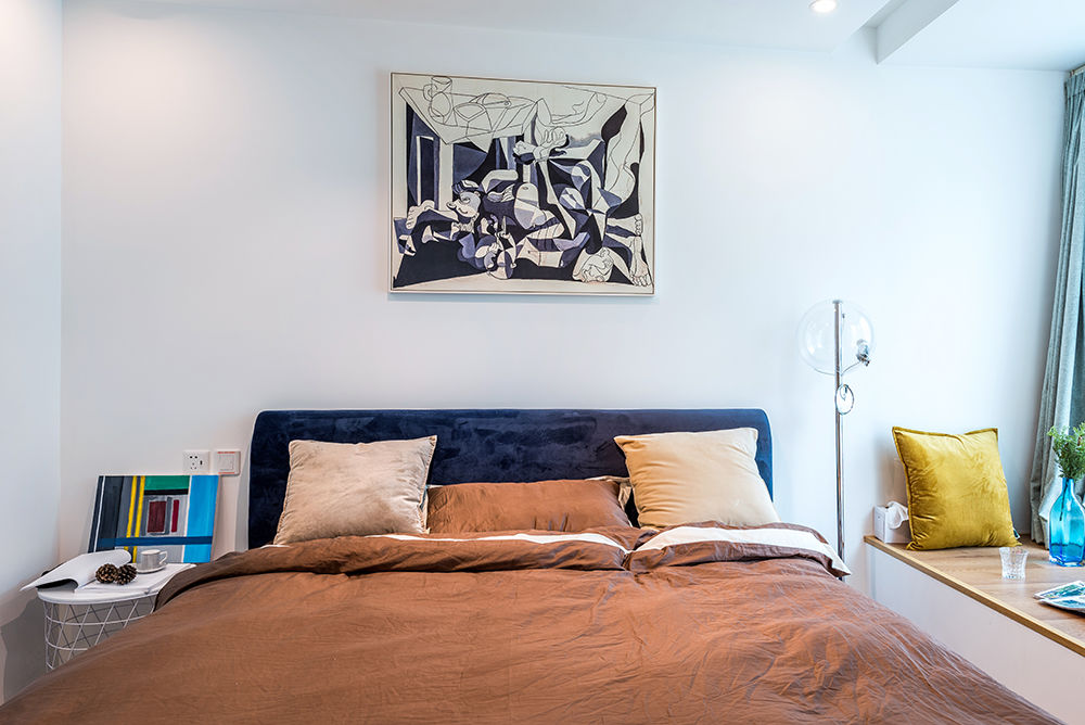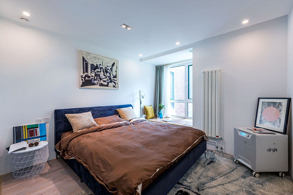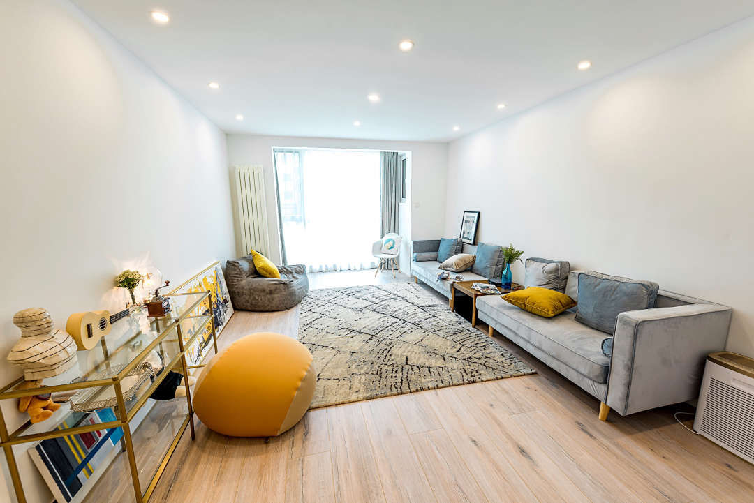 家里实际层高只有2米6,还装有中央空调和新风,但是空间感非常大,就是大面积使用白色的缘故。但是如果全是白色就太过于白了,所以我们会有一些跳跃的颜色比如姜黄色,墨蓝色,使空间更活跃、更鲜艳一些。