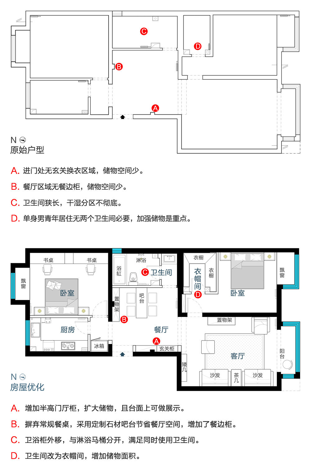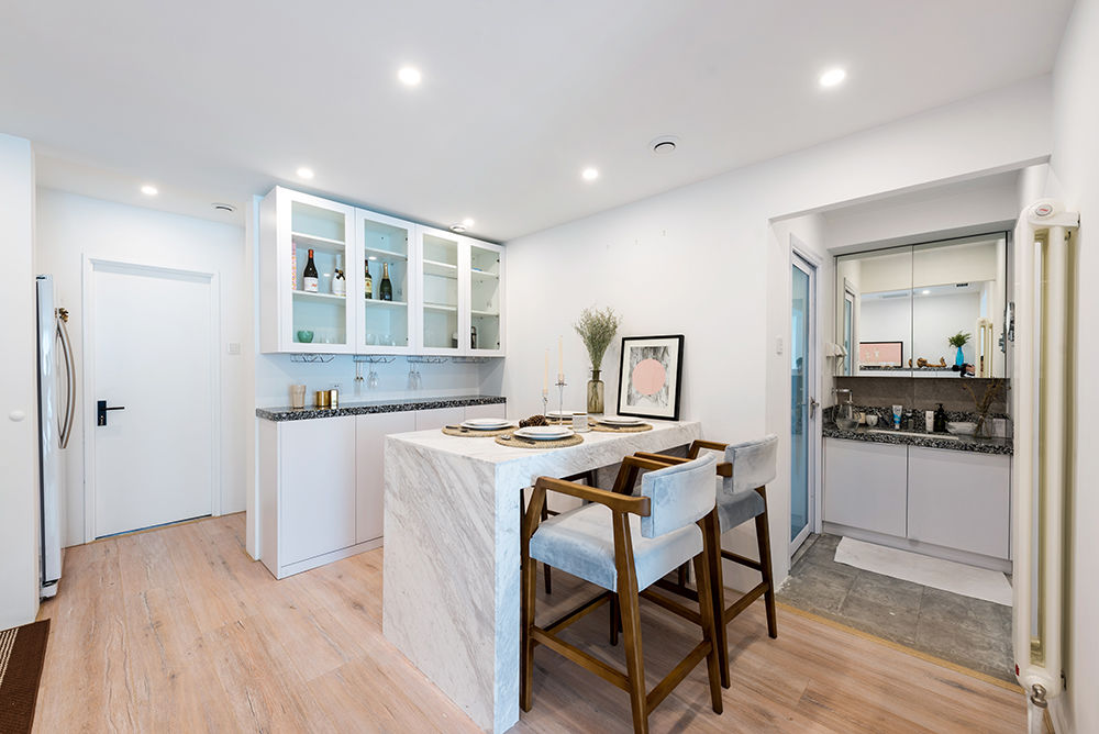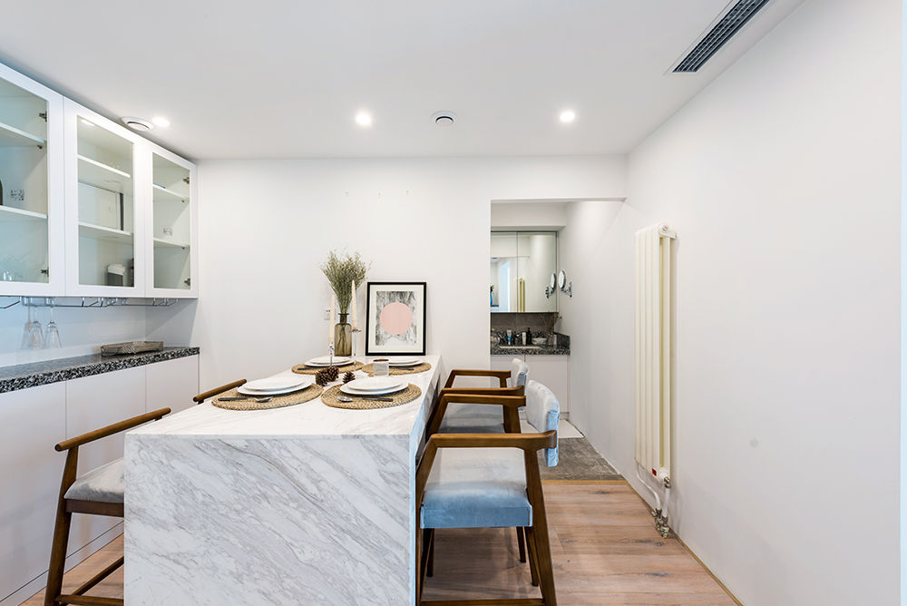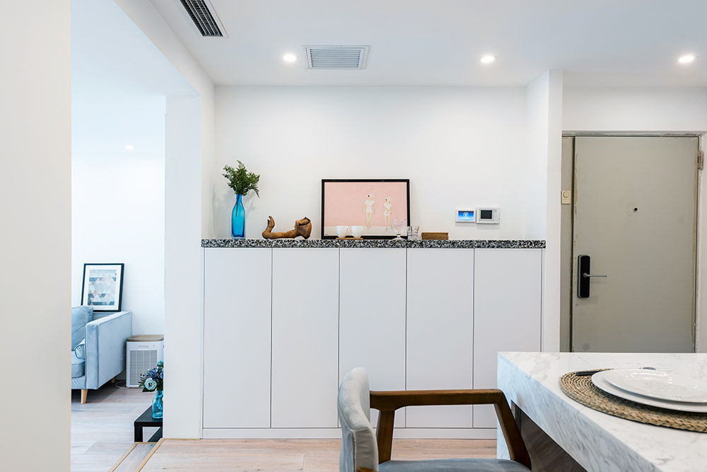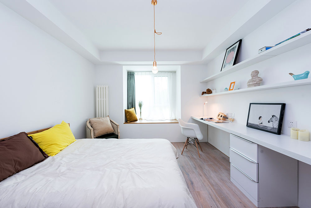 莫先生在北京一个人住,他对于家的理念就是去中心化,空间简约到极致,不走套路,不循规蹈矩。白色是个人喜好,家里能用白色的就都用白色的,为了减少压抑感,我们打造了一个纯白之家,虽然北京雾霾严重,但房间高大明亮了不少。