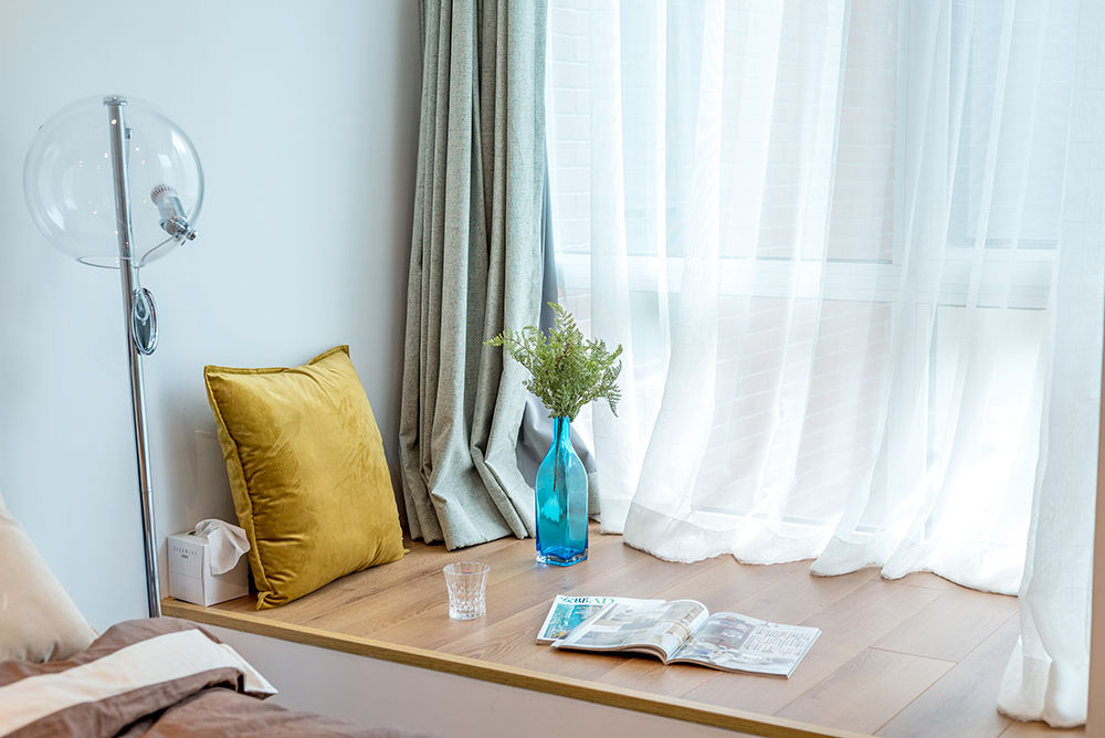 飘窗上选取了复合木地板平铺,温润的木材,直接坐在上面也很舒服。