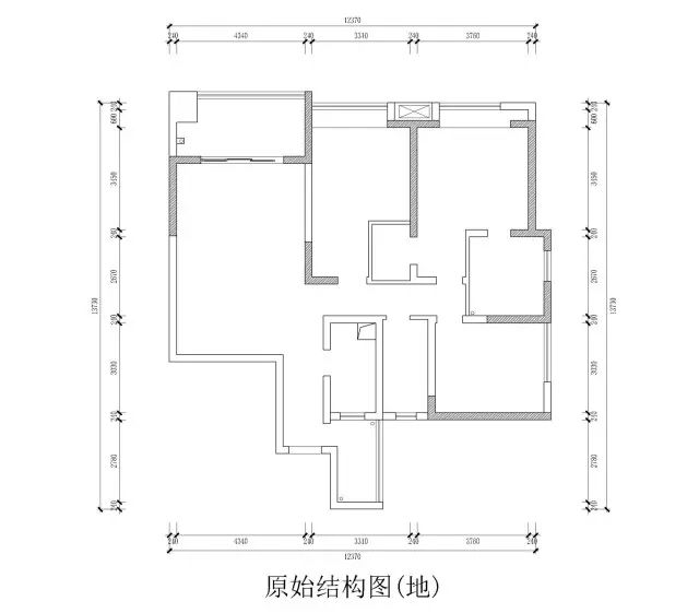 原始平面图,在空间结构上,放弃了原有餐厅的位置,加大了客厅的使用空间。