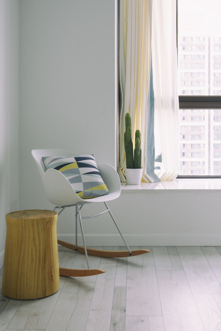 客厅旁边休闲的小空间。摆上一个懒人沙发,慢慢的诠释出慵懒惬意的生活节奏。业主喜欢在这个懒人沙发上坐着看书或者发呆,平躺或坐,都可以。