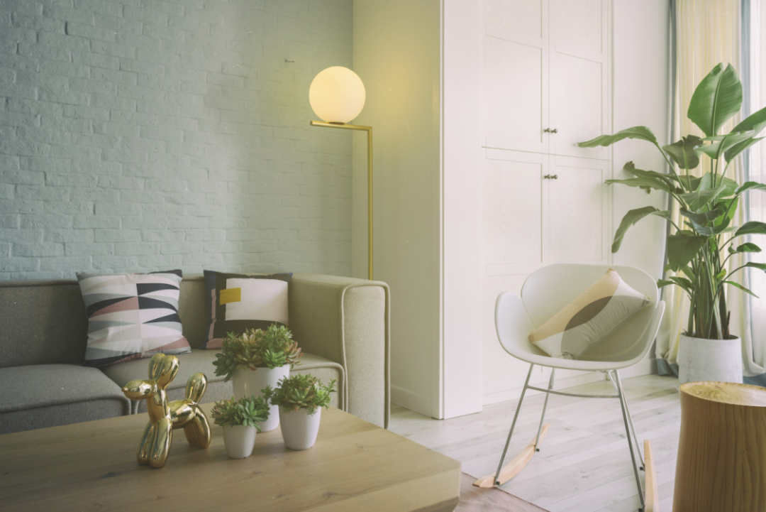 线条形成的几何造型与休闲区域的柜子造型相呼应。摆上三两株植物,茶几显得更有韵味。
