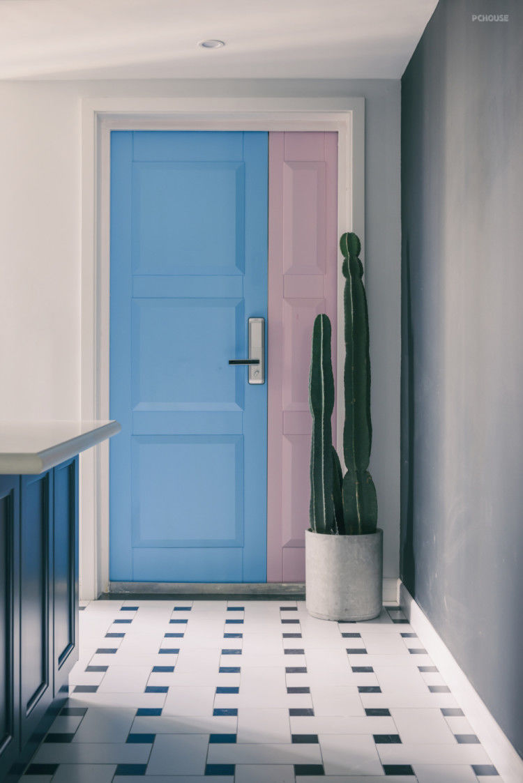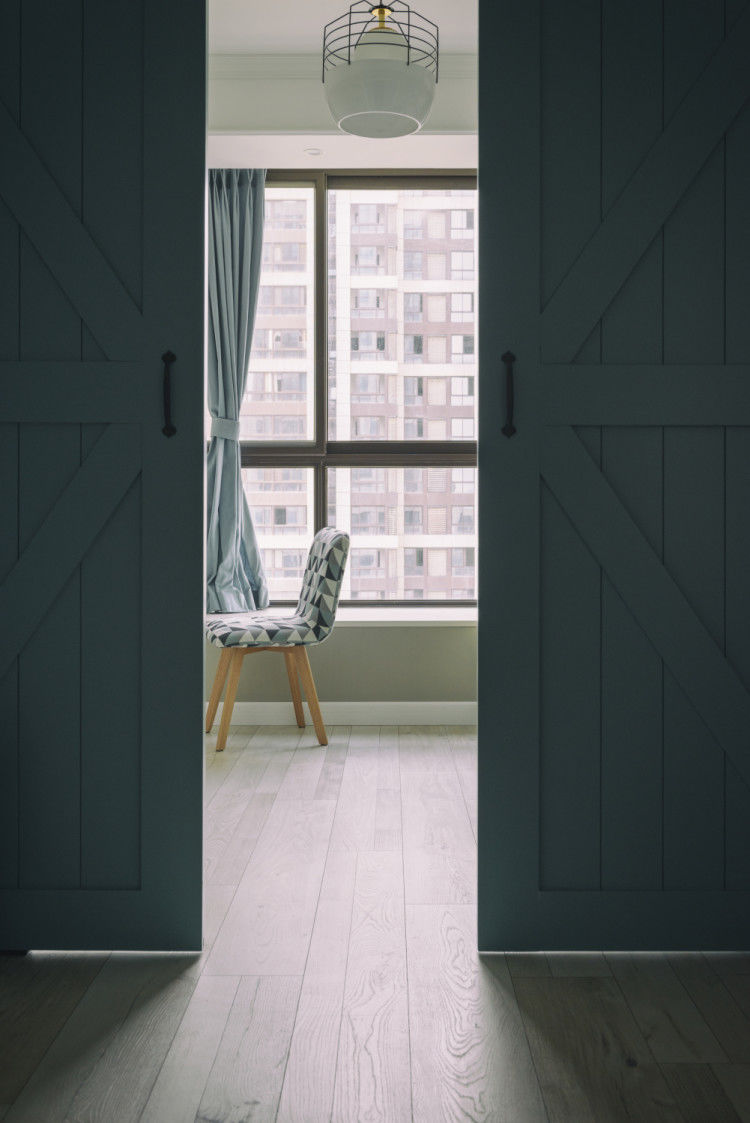 门,其实是这房子里面的一大亮点。这个平推的门,有没有让你想起美国牛仔用来堆放草料的谷仓啊,电影里面的谷仓就是这种平推门。不管是什么颜色的门,尽可能的把木头的原本形态做了一些重合。