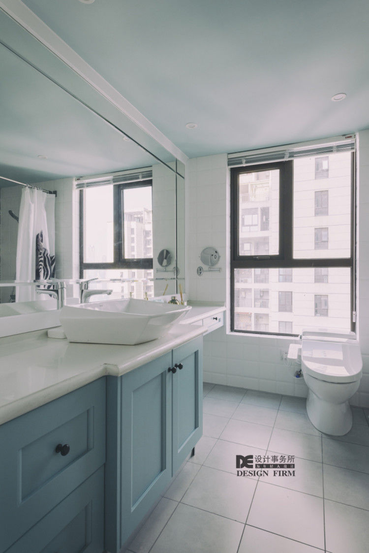 这个次卫跟主卫的风格类似,都主要用的是蓝白色调。