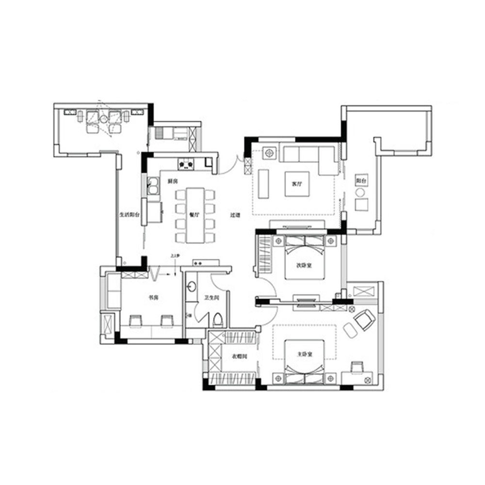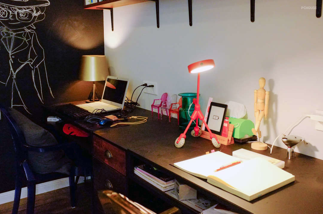 女神家原始户型厕所面积都很小,了解到他们的生活习惯和需求,于是设计师改造卫生间为衣帽间,扩大原卫生间面积。女神和她家先生都是游戏爱好者,所以书房弄了一个“网吧二连座”,把书房的门改到餐厅方向,把卧室休息区和将来的聚会区放在一条动线上,功能明确区分。
