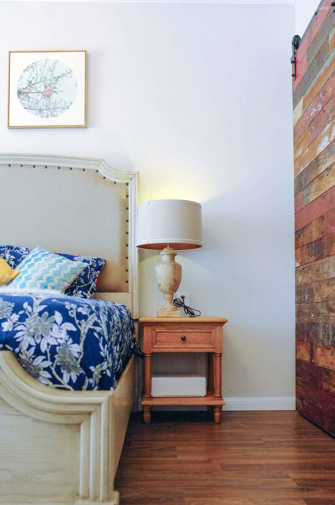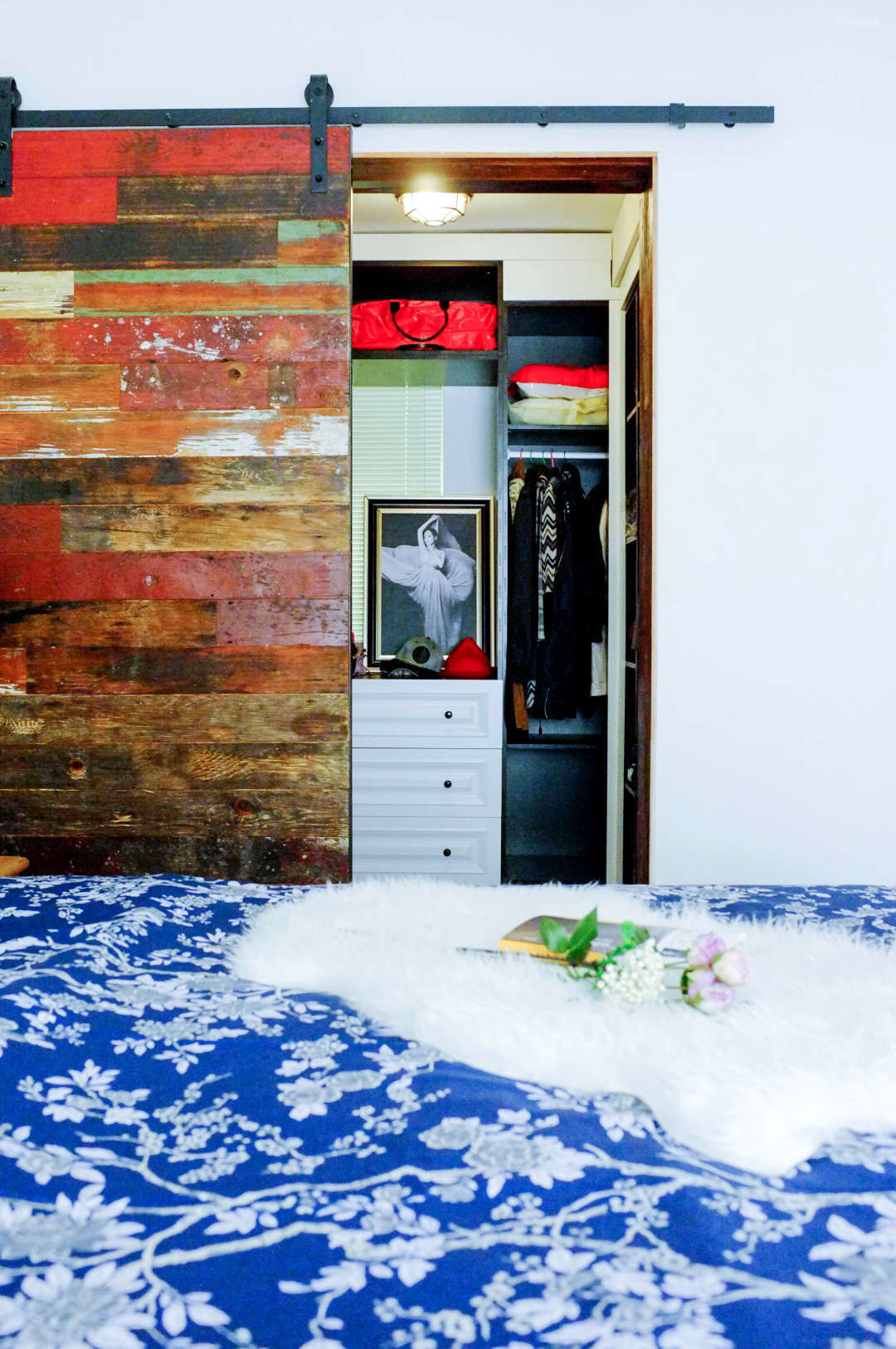 女神就在网上自购了老木板和滑轨,木工帮忙定好挂上,总价800元。