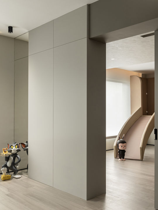 白色丝质纱帘的质感,与空间简洁的形态和色彩相得益彰。