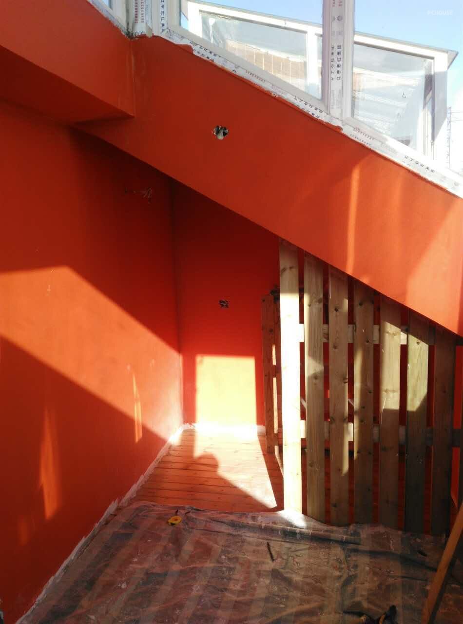 改造前二层卧室与楼梯之间的墙体照片。