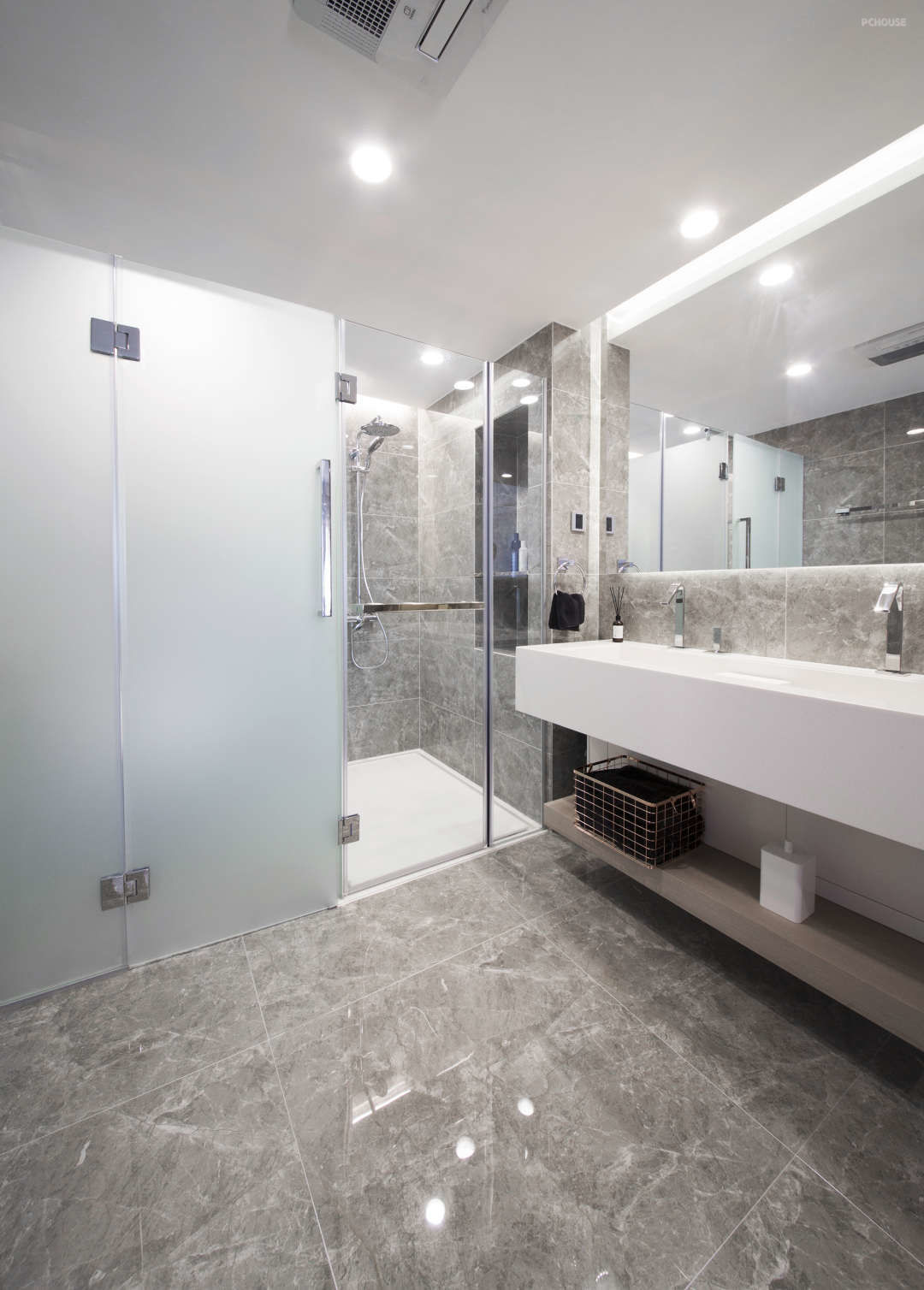 户型改造方面,一:将原有的厨房和设备间打通,使厨房拥有了两扇窗,采光有所改善。原有储物间的功能还可满足的同时,厨房操作空间变得很宽敞。二:把主卫朝向卧室的一面轻体墙去掉换成了玻璃隔断,卫生间变成了明卫,卧室空间在视觉上也有所扩张。