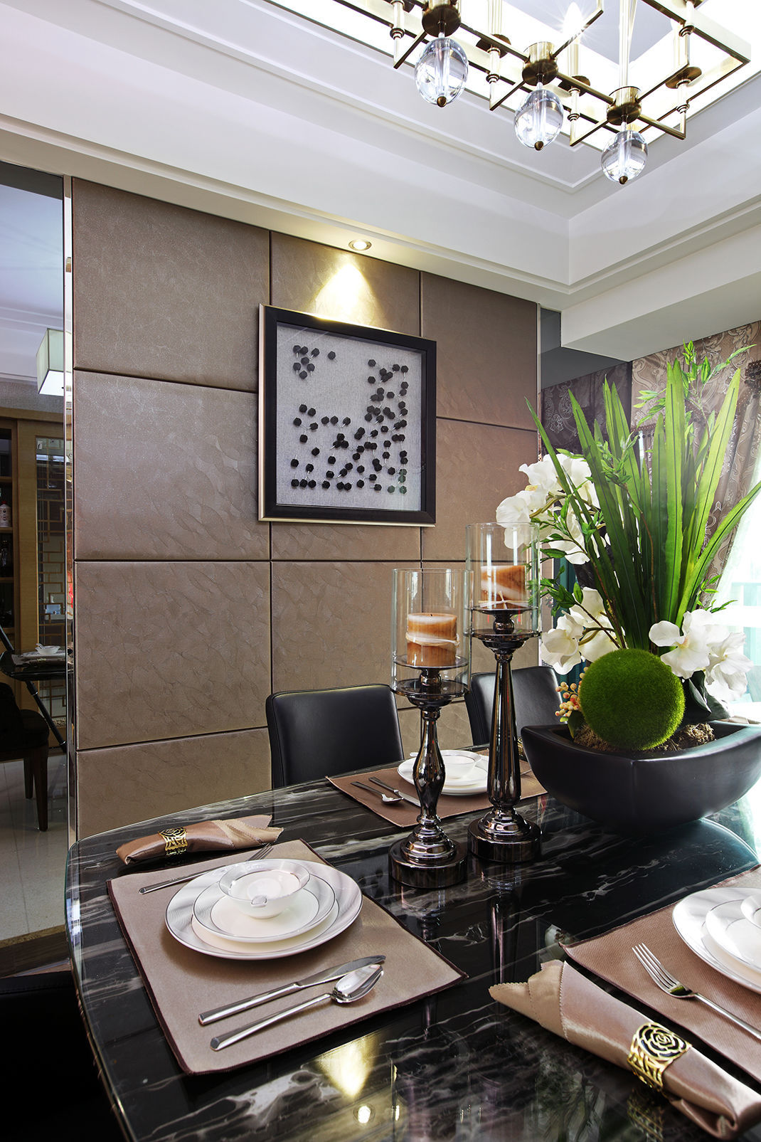 铁艺花饰,鸟的摆件,花瓶里的跳舞兰,营造出一个花鸟的世界,亦幻亦真。