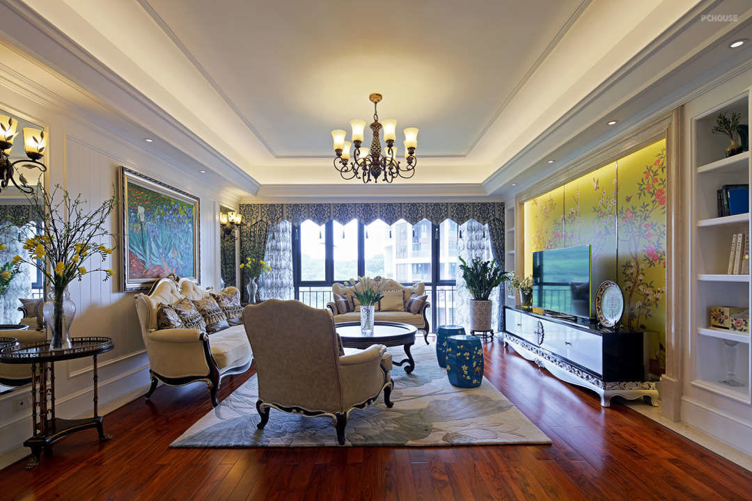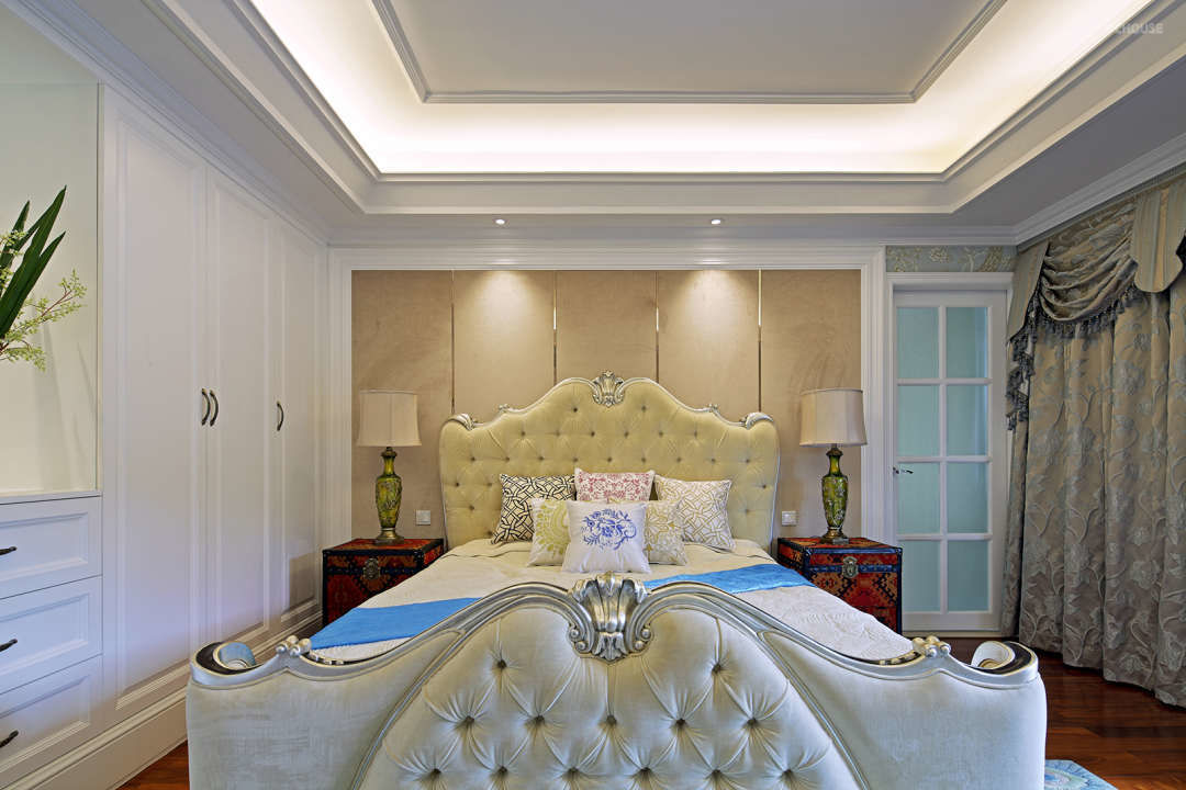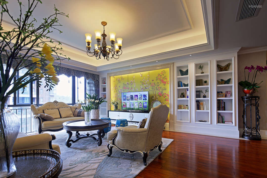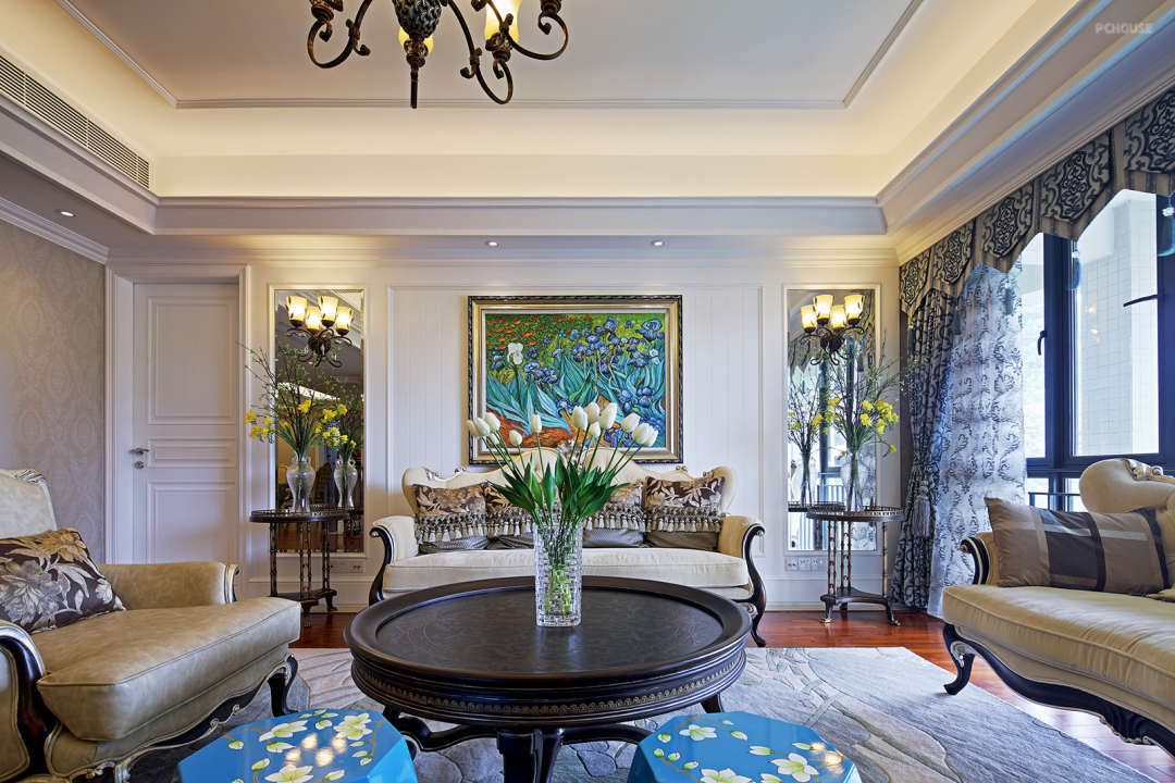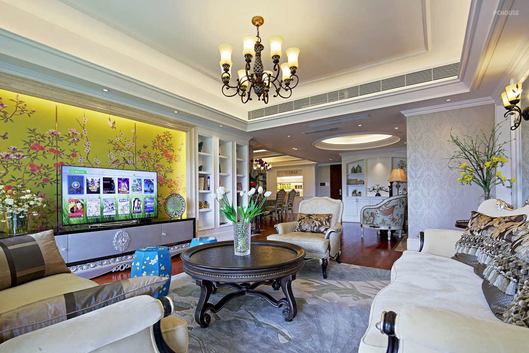 前言: 生存于钢筋水泥的丛林中,人们渴望质朴、休闲的家居环境。本案在求索休闲的同时,达到文化的深度,以感性的手法诠释休闲概念,表现质朴、自然、精致的休闲文化。简约而不简单,却在关键部位渲出精彩,简洁而整体,大气而流畅。运用手绘壁纸、玫瑰金不锈钢、理石、拼花马赛克,融入中国传统漆器鼓凳,将中、西元素巧妙融合。