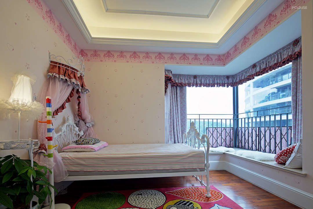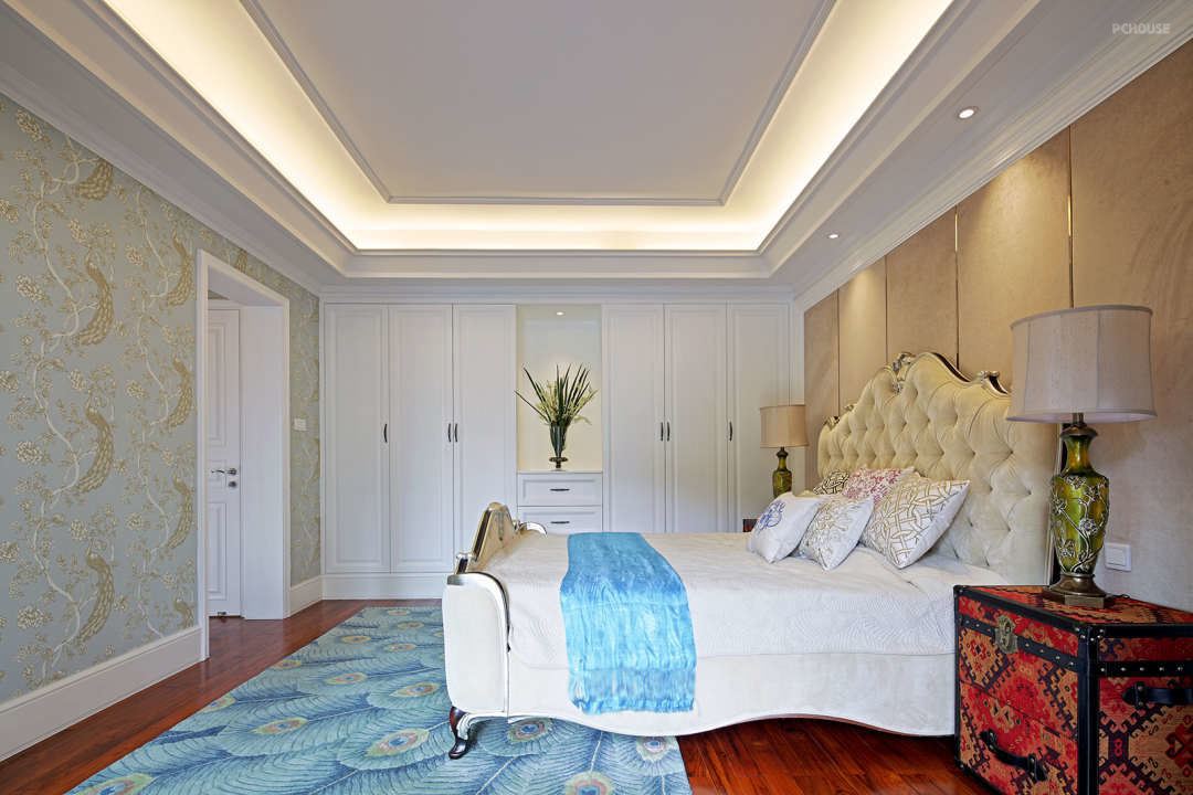 孔雀羽毛的地毯,跟壁纸上的羽毛,相得益彰。