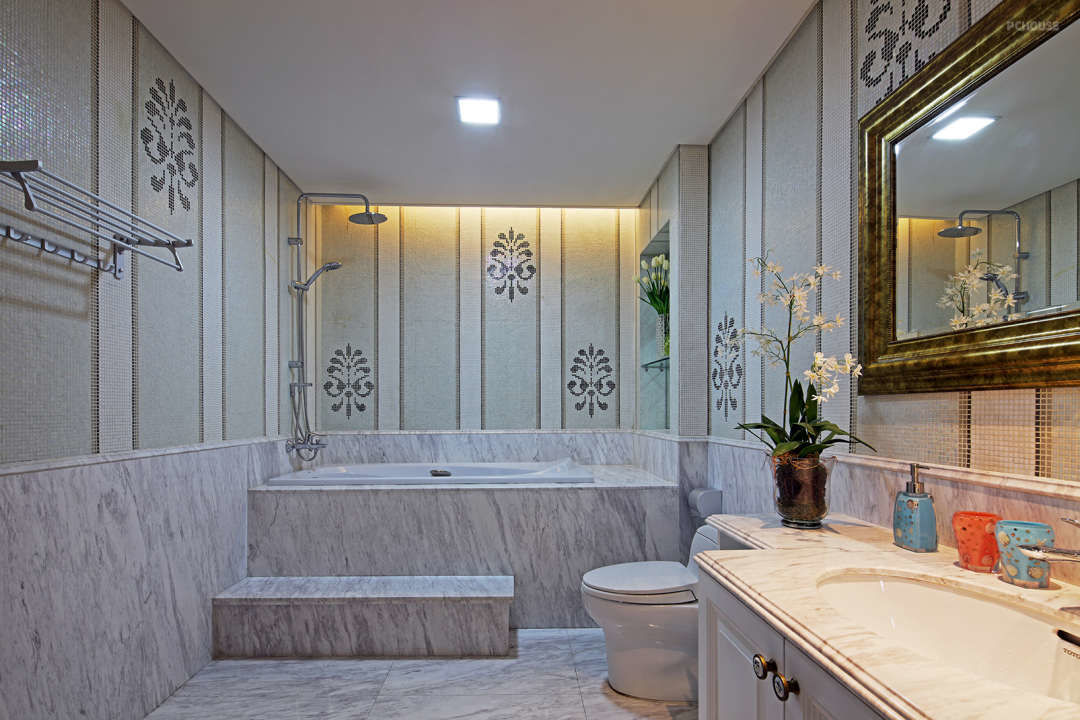 印花的马赛克,配上白色天然纹理的石材,高贵典雅。