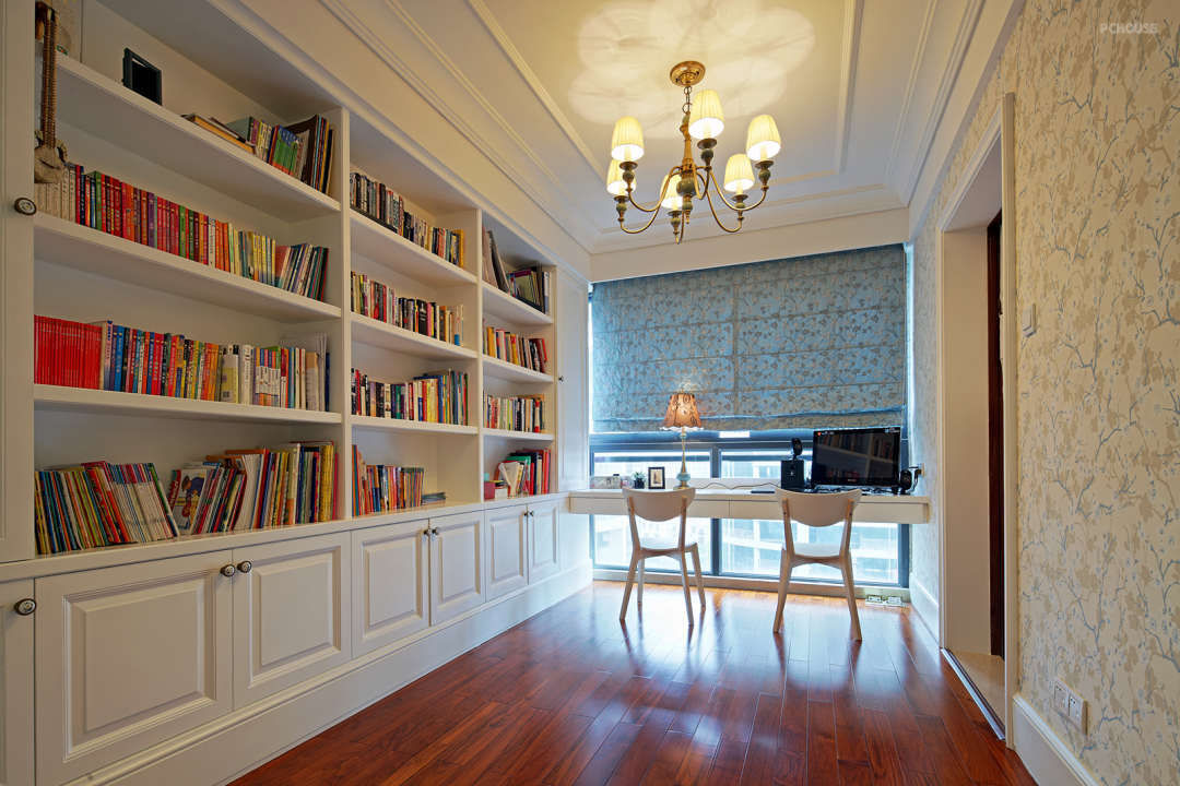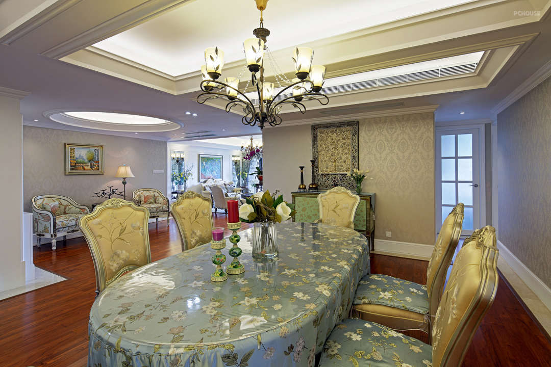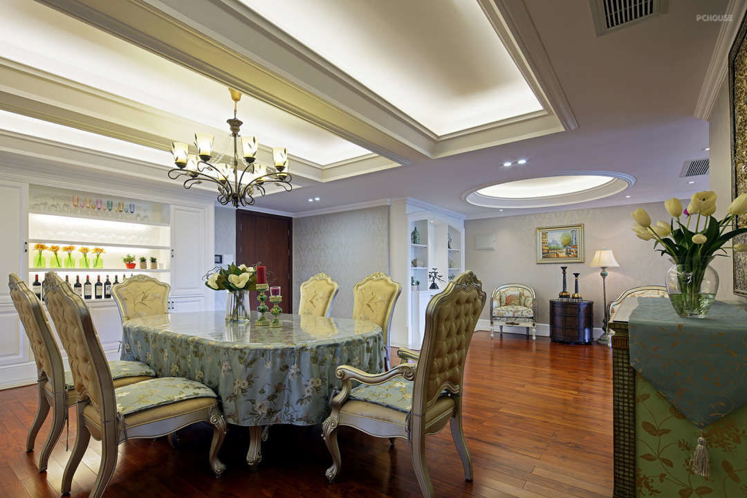 餐厅顶上有一条大梁没有办法打掉,干脆再做上一条,看不出来吧。