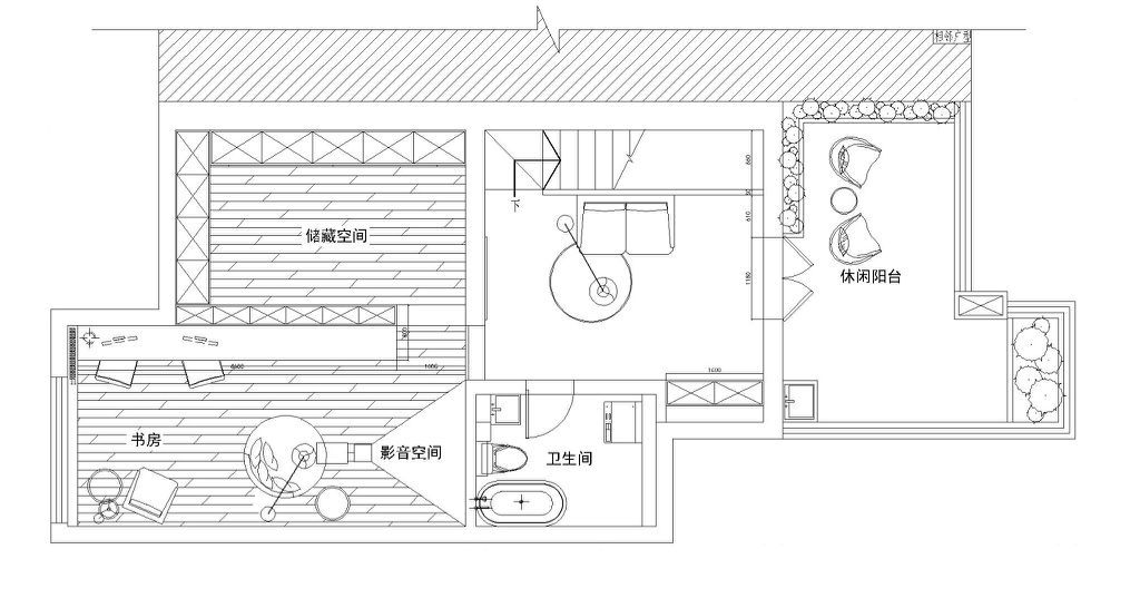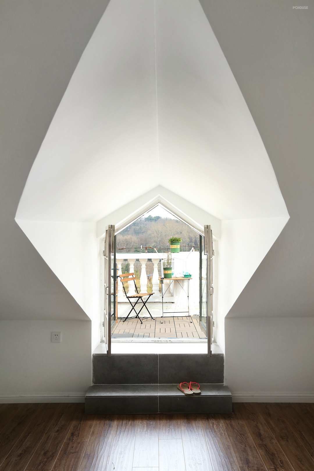 书桌对面,做了一个影音室,利用斜顶高的一面做了投影墙,斜顶低的一面放上懒人沙发。一个休息的午后,或者是夜晚,两个人,一群小动物,一部电影,还有什么比这更幸福。