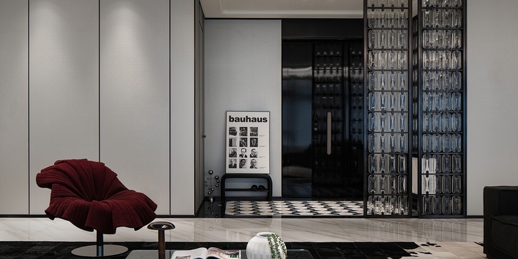 暗金色的木门锁是空间的点睛,细节永远是最应被关怀的。