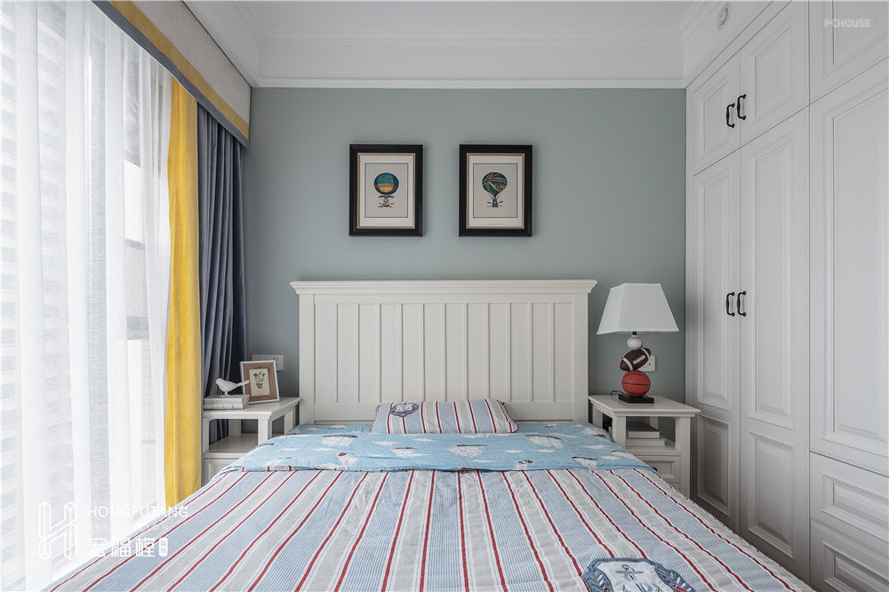 主卧空间面积相对充裕,除了原本的衣帽间外,在主卧休息空间也设立了衣帽柜,提供了充足的收纳空间。
