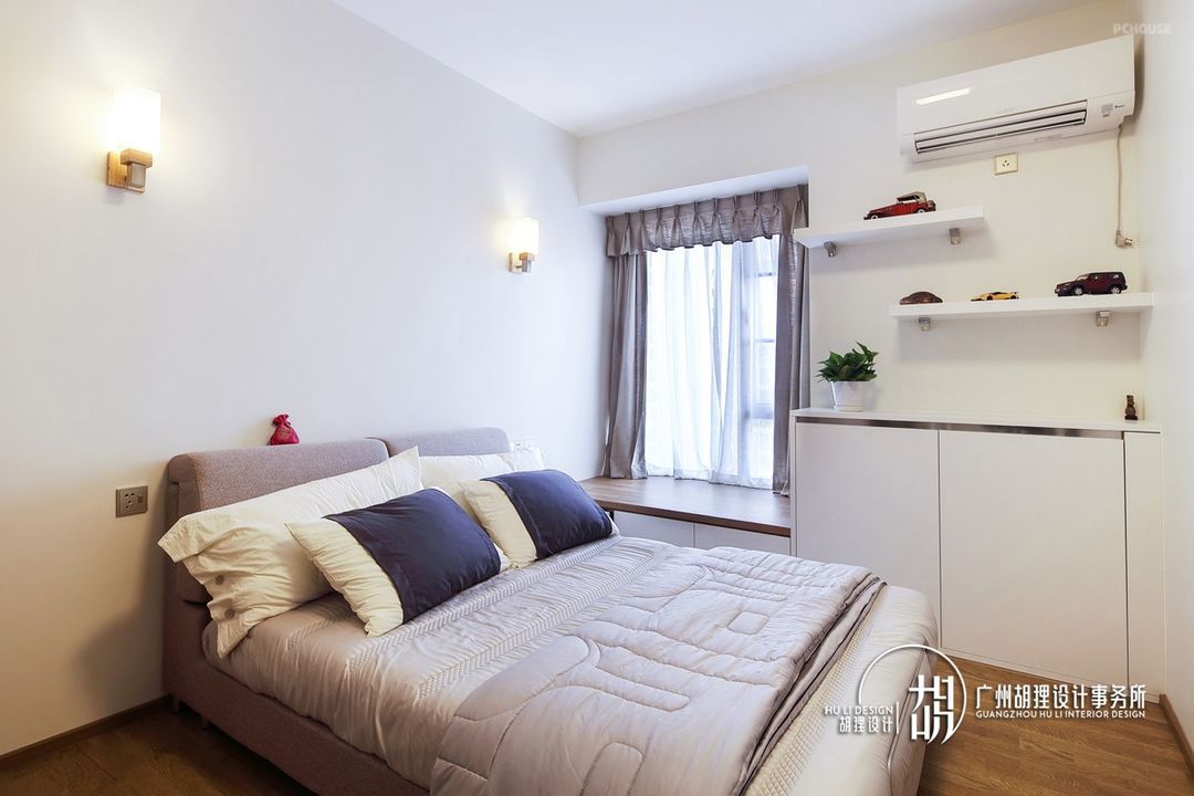 主人房里依然轻轻淡淡,素素雅雅,只有窗边那一缕小绣花的白纱增加了空间的柔美