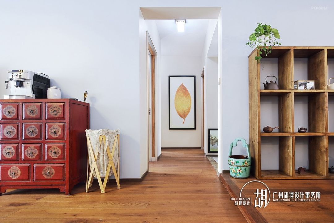 从飘窗这里看向衣帽间,在衣帽间的后面就是主卫的空间了,小小的衣帽间用的是与厨柜一样的材质与木色,让空间的协调在这里得到了统一