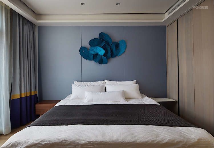 蓝色代表着纯净与求知,如一望无际的大海、等待解锁的宇宙、秋高气爽的天空等,是一种美好的愿景。儿童房以蓝为主色调,与些许米色混合,给人柔和的触感缓解空间的沉闷,加入玛瑙蓝装饰,点缀、增添一丝跃动感。