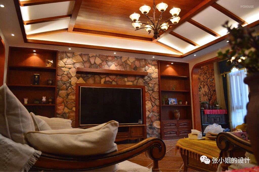 在墙面材质色彩选择上,利用做旧木制作+文化石呈现出自然、怀旧、散发着浓郁泥土芬芳的色彩是美式乡村风格的典型特征。